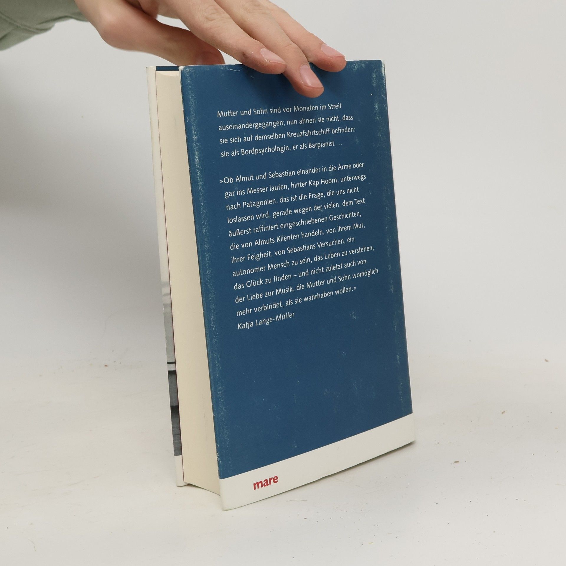 Ein Roman über Mutter und Sohn, Einsamkeit und Sehnsucht, Vertrauen und Verrat – und über die Liebe zur Musik Sie sind vor Monaten im Streit auseinandergegangen; nun ahnen sie nicht, dass sie sich auf demselben Kreuzfahrtschiff befinden: Almut, Ende vierzig, als Bordpsychologin, und ihr Sohn Sebastian, Anfang zwanzig, als Barpianist. Während sich Sebastian in eine Kollegin aus der Crew verliebt und in das Schicksal von vier blinden Passagieren verstrickt wird, bekommt Almut Einblicke in die Ehe-Abgründe der Mitreisenden und muss sich ihrer Vergangenheit stellen, die plötzlich allgegenwärtig ist: in Gestalt von Bernd Gaus, dem Personalmanager des Luxusliners, der sich täglich zur Musikstunde am Flügel in Almuts Beratungszimmer einfindet.