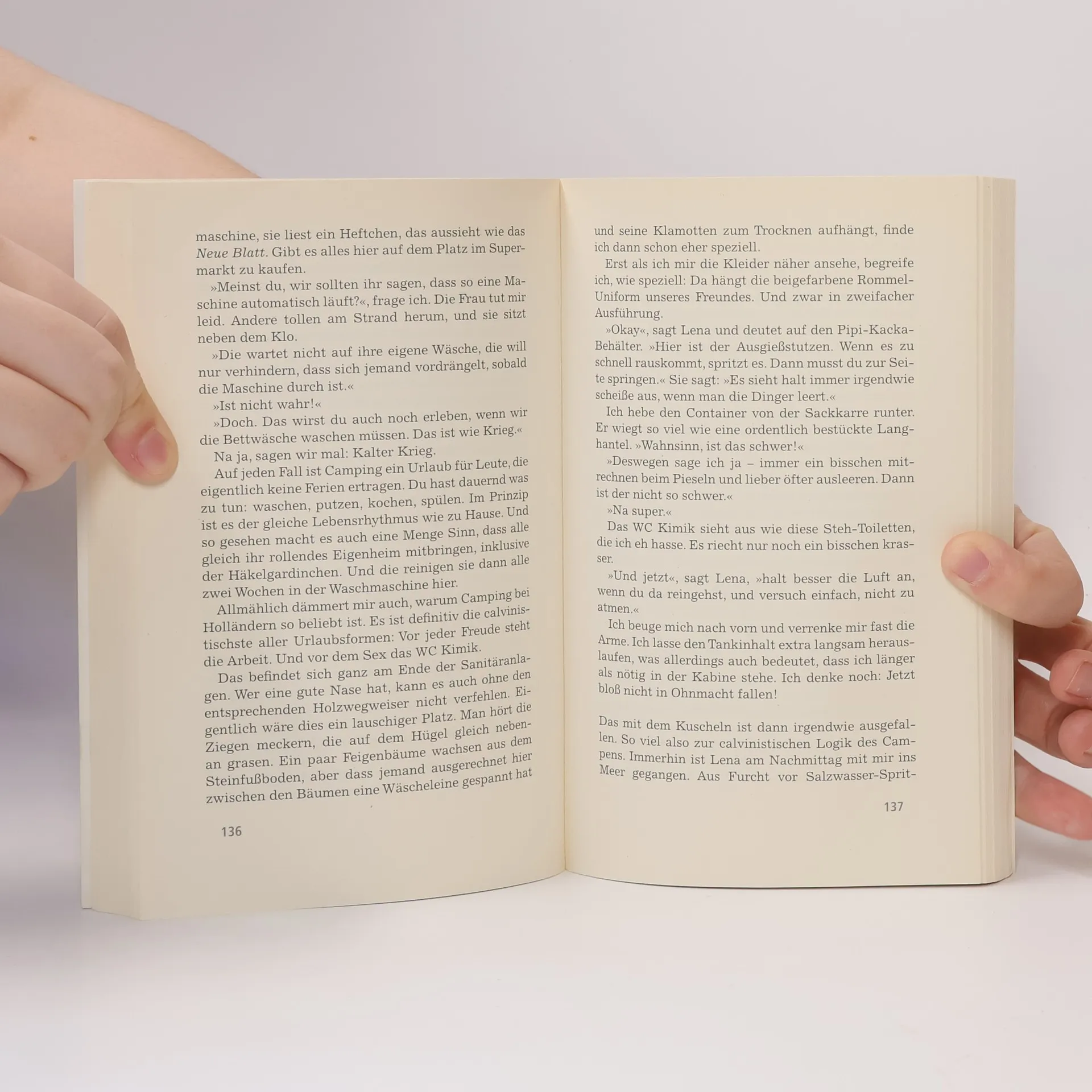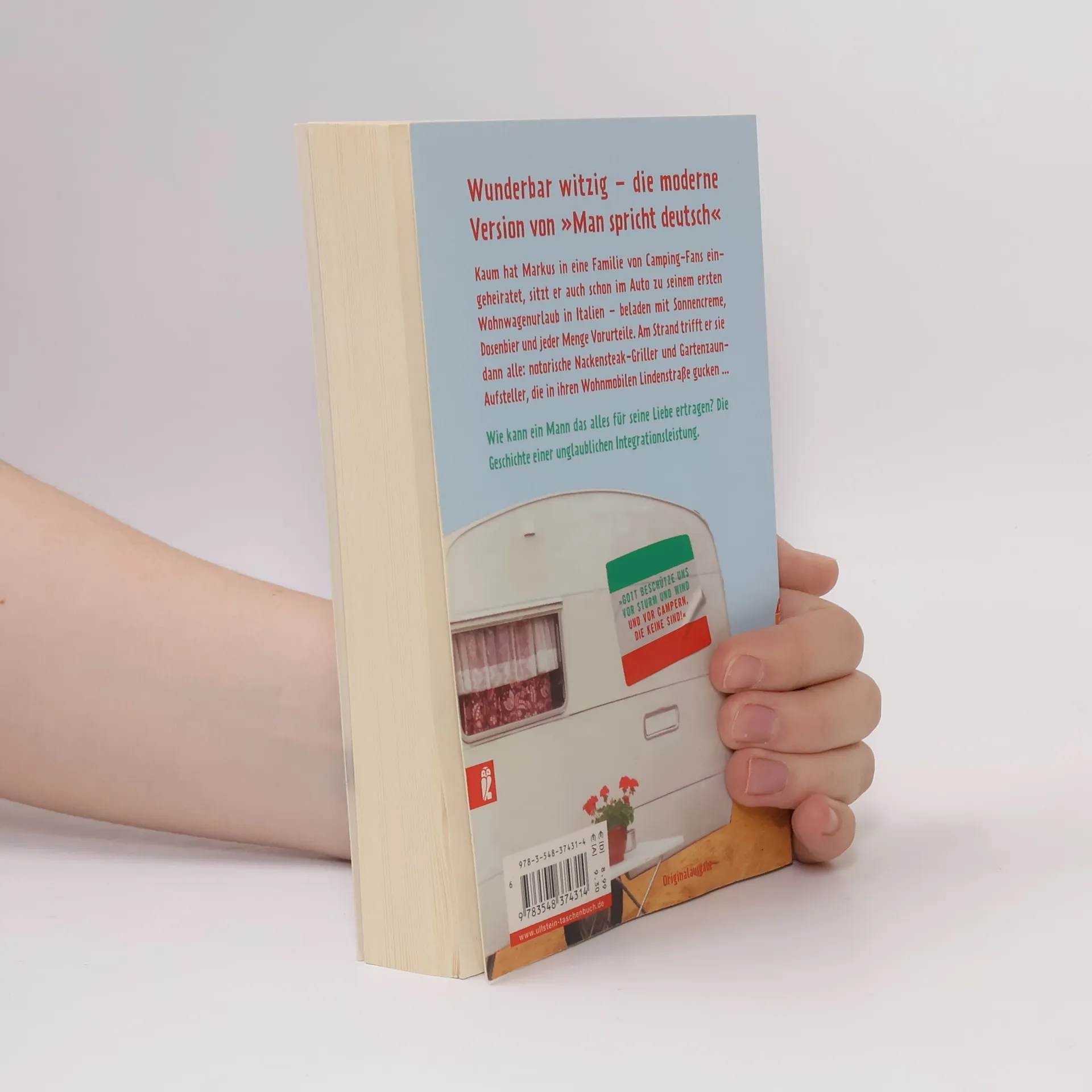 Kaum hat Markus in eine Familie von Camping-Fans eingeheiratet, sitzt er auch schon im Auto zu seinem ersten Wohnwagenurlaub in Italien –beladen mit Sonnencreme, Dosenbier und noch mehr Vorurteilen. Am Strand trifft er sie alle: notorische Nackensteak-Griller und Gartenzaun-Aufsteller, die in ihren Wohnmobilen Lindenstraße gucken. Wie kann ein Mann das alles für seine Liebe ertragen? Die Geschichte einer unglaublichen Integrationsleistung.