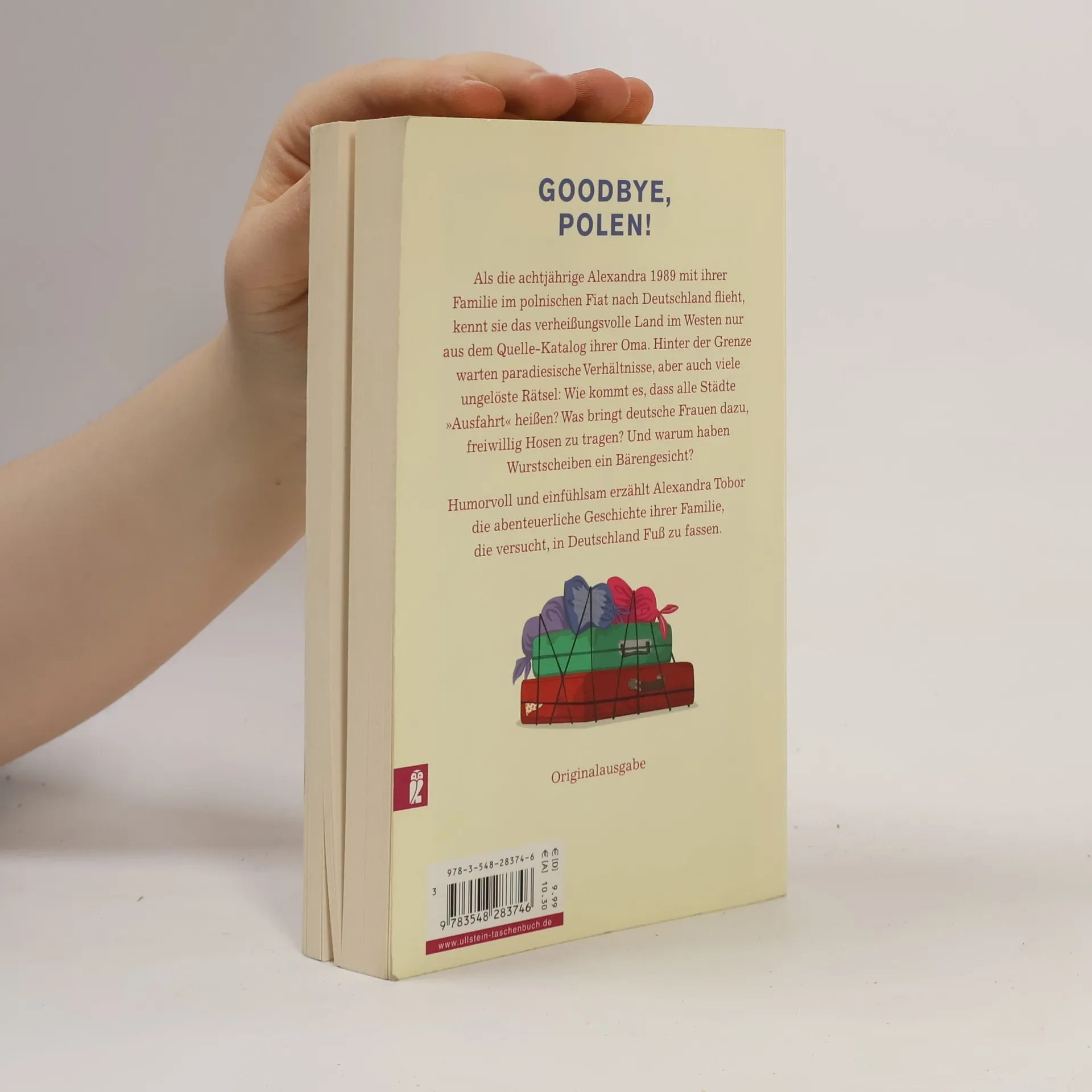 Als die achtjährige Alexandra 1989 mit ihrer Familie im polnischen Fiat nach Deutschland flieht, kennt sie das verheißungsvolle Land im Westen nur aus dem Quelle-Katalog ihrer Oma. Hinter der Grenze warten paradiesische Verhältnisse, aber auch viele ungelöste Rätsel: Wie kommt es, dass alle Städte „Ausfahrt“ heißen? Was bringt deutsche Frauen dazu, freiwillig Hosen zu tragen? Und warum haben Wurstscheiben ein Bärengesicht? Humorvoll und einfühlsam erzählt Alexandra Tobor die abenteuerliche Geschichte ihrer Familie, die versucht, in Deutschland Fuß zu fassen.