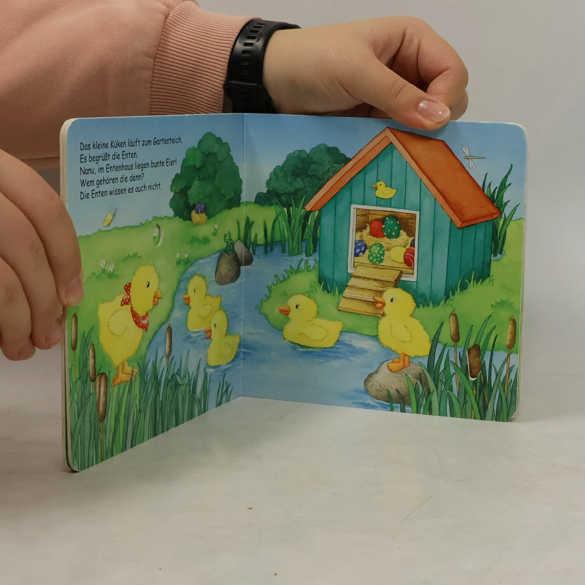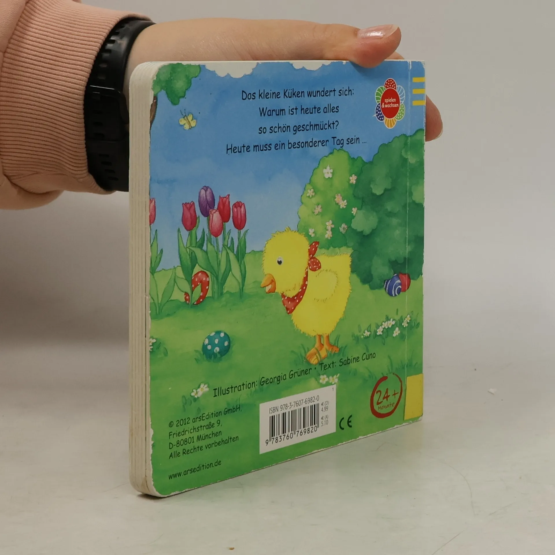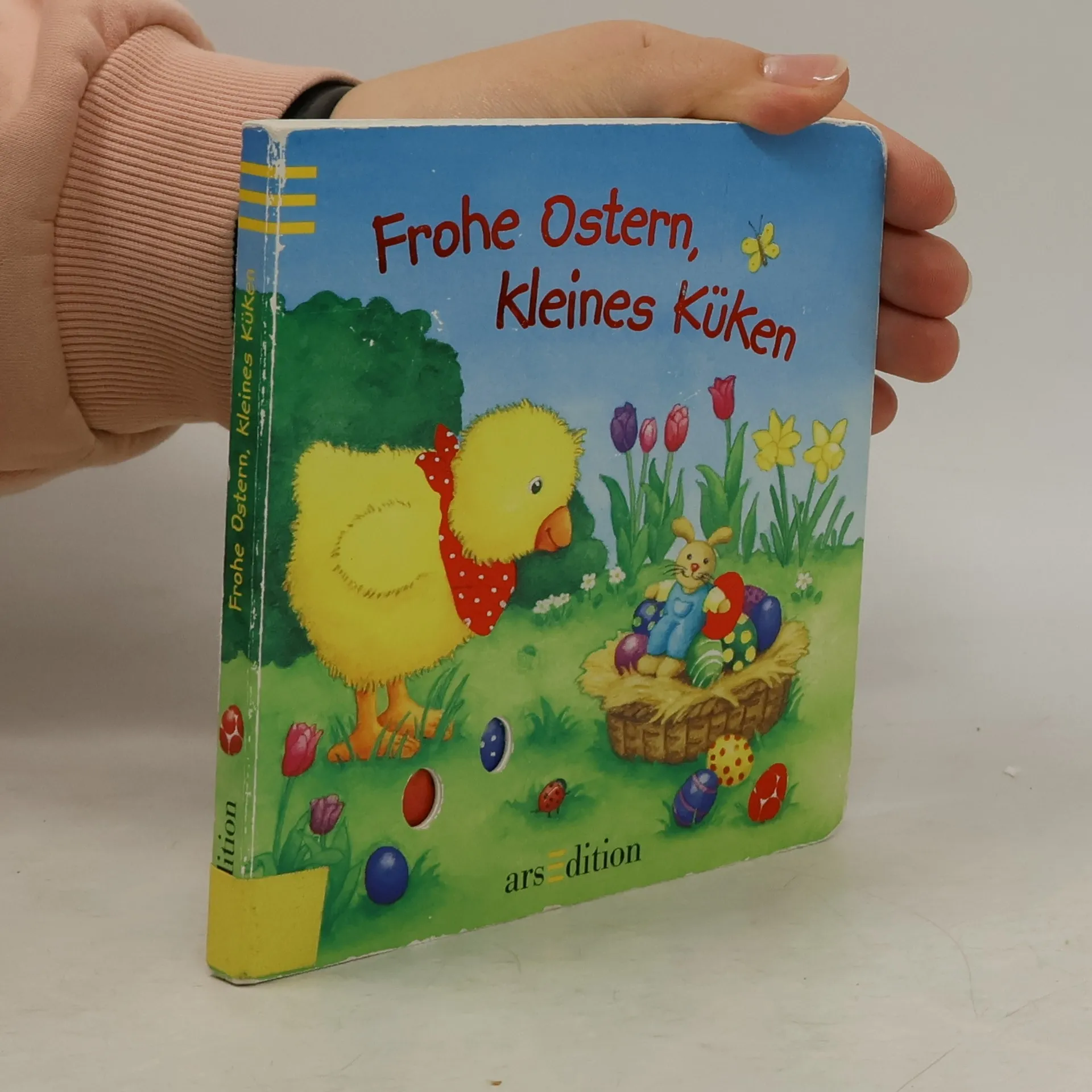 Irgendetwas ist heute anders, denkt das kleine Küken. Alles ist geschmückt und überall stehen Schokoladenhasen…es ist Ostern! Zusammen mit dem kleinen Küken kann das Kind in diesem Buch die schönsten Sachen rund ums Osterfest entdecken. Mit den Gucklöchern und der Glitzerfolie ist dieses Buch ein perfektes Geschenk fürs Osternest.
