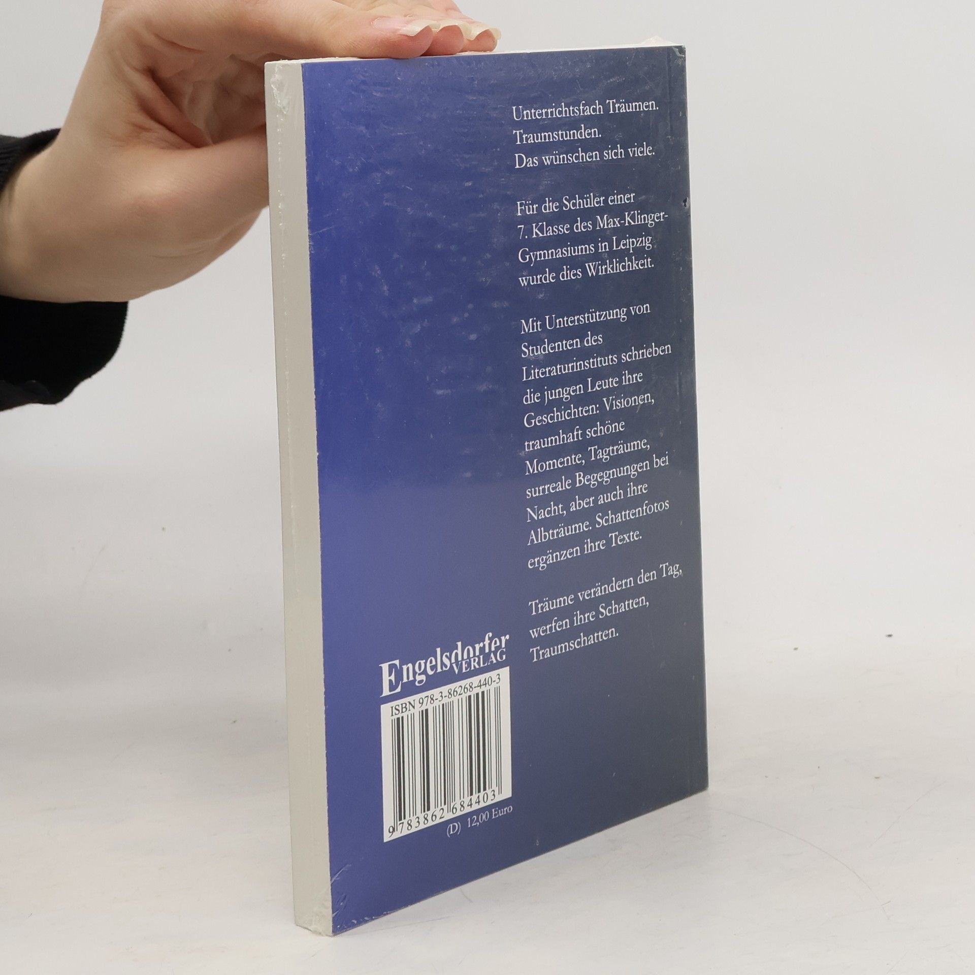 Unterrichtsfach Träumen. Traumstunden. Das wünschen sich viele. Für die Schüler einer 7. Klasse des Max-Klinger-Gymnasiums in Leipzig wurde dies Wirklichkeit. Mit Unterstützung von Studenten des Literaturinstituts schrieben die jungen Leute ihre Geschichten: Visionen, traumhaft schöne Momente, Tagträume, surreale Begegnungen bei Nacht, aber auch ihre Albträume. Schattenfotos ergänzen ihre Texte. Träume verändern den Tag, werfen ihre Schatten, Traumschatten.