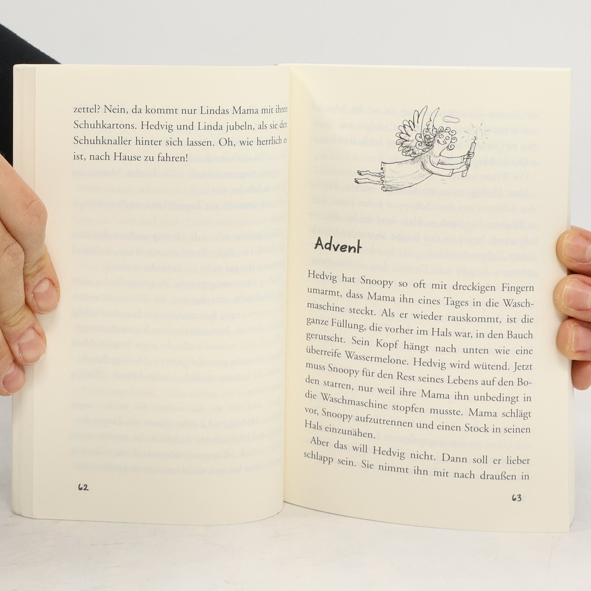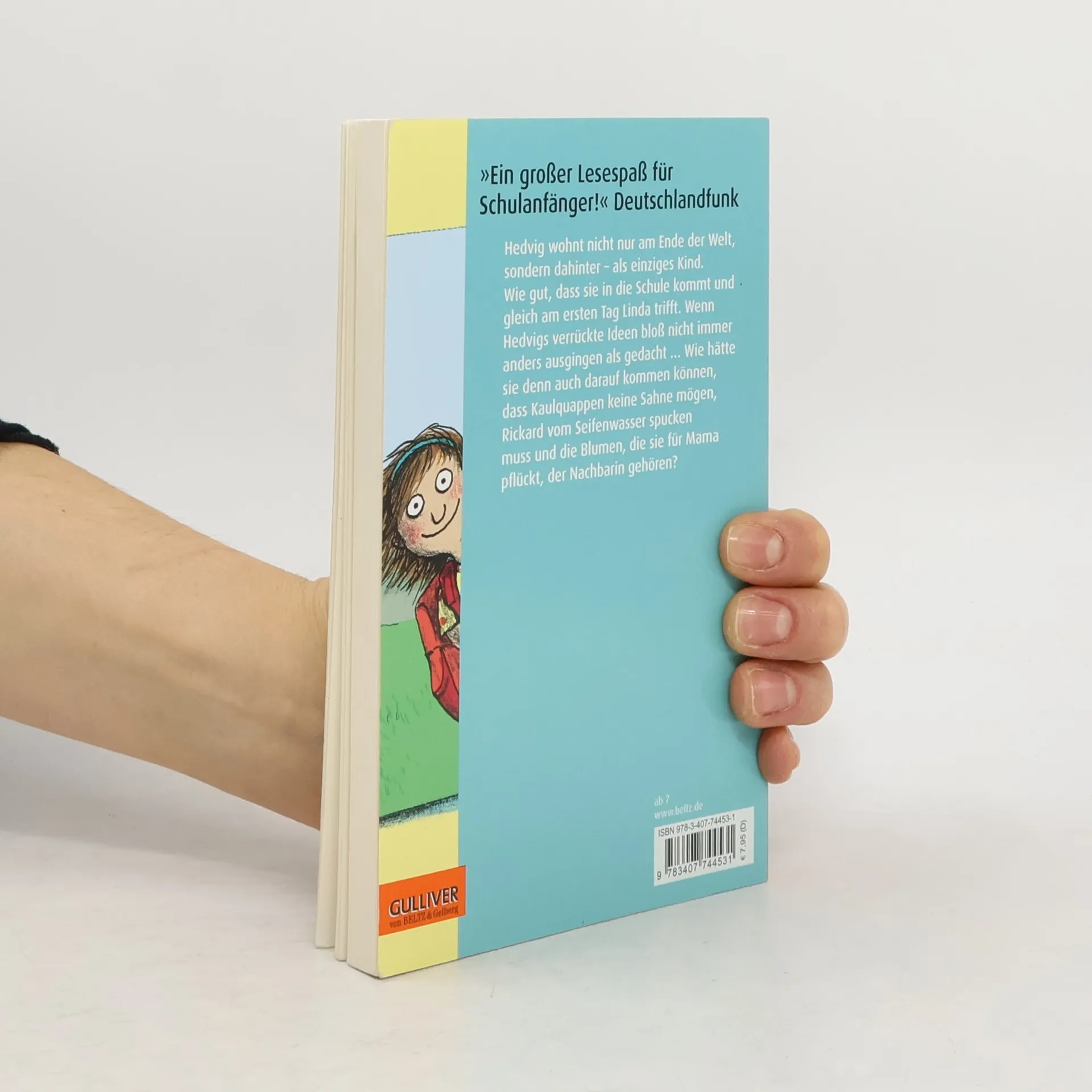 Hedvig wohnt nicht einmal am Ende der Welt, sie wohnt dahinter. In einem roten Holzhaus, mit ihren Eltern, einem Schaf, einigen Hühnern, einem Hund, zwei Katzen – aber ohne beste Freundin. Denn Hedvig ist das einzige Kind weit und breit. Was für ein Glück, dass sie bald in die Schule kommt! Als sie gleich am ersten Schultag Linda kennenlernt, ist Hedvigs Leben plötzlich voller Abenteuer. Wenn ihre verrückten Ideen bloß nicht immer anders ausgingen als gedacht ... Wie hätte Hedvig denn auch darauf kommen können, dass Kaulquappen keine Sahne mögen, Rickard vom Seifenwasser in seiner Trinkflasche spucken muss und die Blumen, die sie für Mama pflückt, eigentlich der Nachbarin gehören?