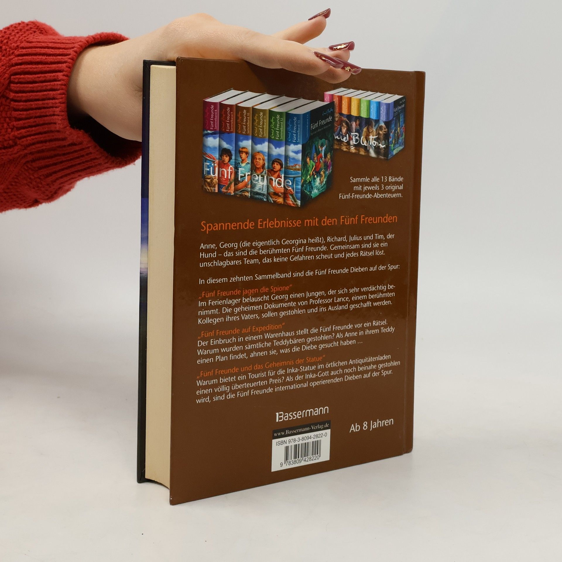 Fünf Freunde sorgen für Leselust und Spannung Seit über 50 Jahren fiebern Kinder mit, wenn die Fünf Freunde Anne, Georg (die eigentlich Georgina heißt), Richard, Julius und der Hund Tim in alten Gemäuern, dunklen Höhlen oder unterirdischen Gängen verborgene Schätze aufspüren oder sich gegen finstere Gestalten behaupten. In diesem zehnten Sammelband sind die Fünf Freunde Dieben auf der Spur. Enthalten sind die Einzelbände „Fünf Freunde jagen die Spione“, „Fünf Freunde auf Expedition“ und „Fünf Freunde und das Geheimnis der Statue“.
