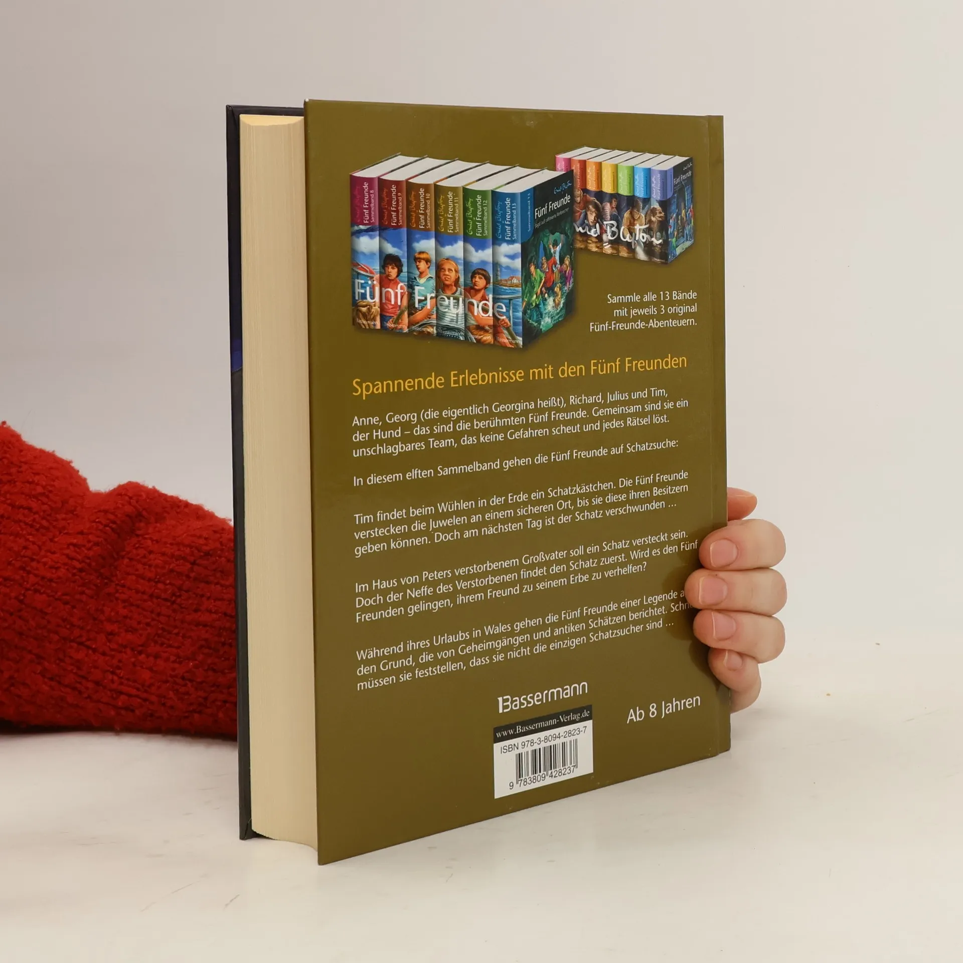 Spannung pur mit den Fünf Freunden Seit über 50 Jahren fiebern Kinder mit, wenn die Fünf Freunde Anne, Georg (die eigentlich Georgina heißt), Richard, Julius und der Hund Tim in alten Gemäuern, dunklen Höhlen oder unterirdischen Gängen verborgene Schätze aufspüren oder sich gegen finstere Gestalten behaupten. In diesem elften Sammelband gehen die Fünf Freunde auf Schatzsuche. Für die kleinen Leser Spannung pur: „Fünf Freunde und die geheimnisvolle Schatztruhe“, „Fünf Freunde und die seltsame Erbschaft“ und „Fünf Freunde suchen den verschollenen Goldschatz“.
