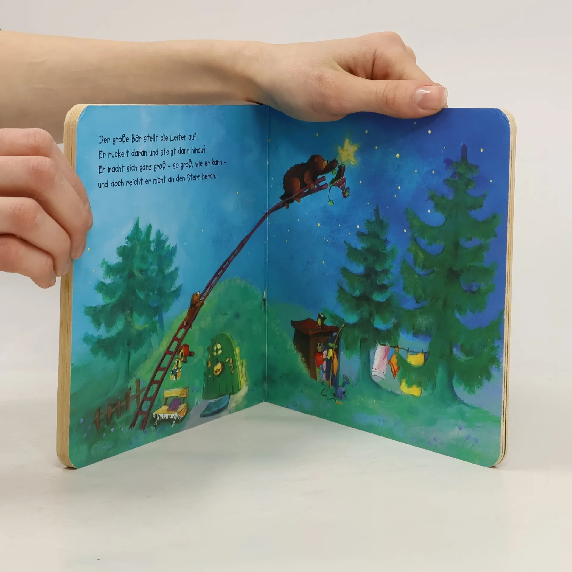 Allerliebste Gutenachtgeschichte für Kuschelkinder Vor dem Zubettgehen sehen der kleine Bär und der große Bär noch einmal nach den Sternen. Doch ein kleiner Stern scheint heute nicht so hell wie die anderen. Sofort suchen die Bären nach einer Möglichkeit, ihm zu helfen. Mit der Leiter klettern sie zu dem kleinen Stern hinauf und setzen ihm eine Mütze auf. Jetzt geht es dem kleinen Stern bestimmt bald wieder besser und der kleine Bär kann ganz beruhigt einschlafen. Poetische Gutenachtgeschichte mit wunderschönen, malerischen Bildern und liebevollen Reimen zum Mitsprechen. Begleitet Kinder sanft in den Schlaf mit einer Geschichte über Hilfsbereitschaft und die Bedeutung von Familie. Lädt zum Kuscheln ein und stärkt das Gefühl von Geborgenheit und Sicherheit bei Kindern vor dem Schlafengehen - für wertvolle gemeinsame Vorlesemomente zwischen Eltern und Kindern.