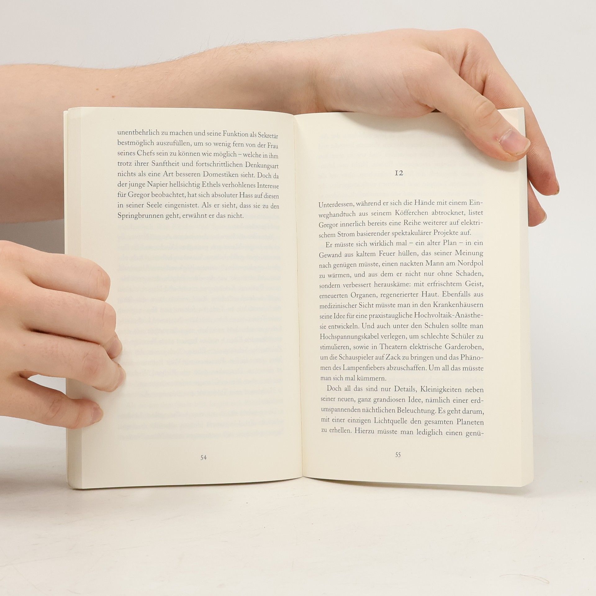 Gregor erfand nahezu alles, was das 20. Jahrhundert prägen sollte, kam aber meistens zu früh. Den »Stromkrieg« gegen Edison gewann er allerdings: der von ihm entwickelte Wechselstrom ließ sich besser transportieren als Edisons Gleichstrom. Doch seine fixe Idee, Energie drahtlos bis in die letzten Winkel der Erde zu übertragen, fand in der Wirtschaft wenig Anklang. Er verarmte, vereinsamte, wurde wunderlich. 1943 verstarb der serbischstämmige Erfinder und Elektroingenieur Nikola Tesla, aus dessen Leben Jean Echenoz höchst fiktionale Funken schlägt.