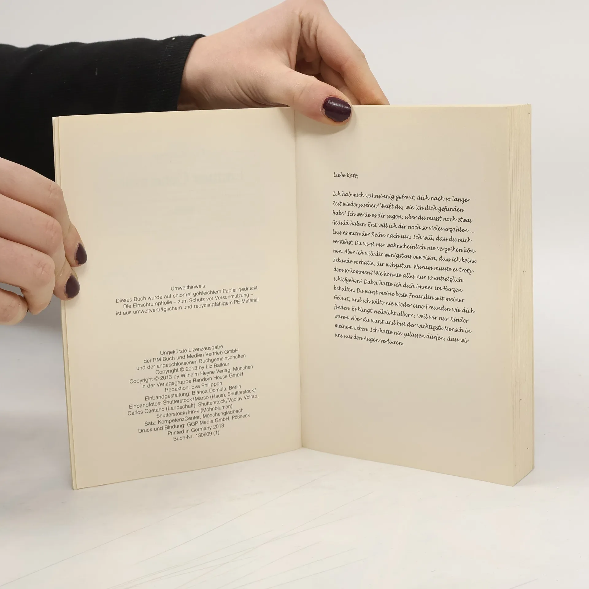 Zwei Frauen, eine tragische Liebe und ein dunkles Geheimnis Kate will eigentlich nur vergessen. Nach dem Tod ihres Mannes Brian vor einem halben Jahr hat sie sich in ihr Heimatdorf an der Küste Irlands zurückgezogen. Mit der Unterstützung ihrer Verwandten, besonders ihrer Cousine und Vertrauten Sophie, kommt sie langsam zur Ruhe. Eines Tages steht plötzlich ihre Schulfreundin Emma vor der Tür. Die beiden Frauen knüpfen an vergangene Zeiten an, doch Emma scheint etwas zu verheimlichen. Kurz darauf macht Kate eine unangenehme Entdeckung, die ihr bisheriges Leben vollkommen in Frage stellt, und ihr wird klar: Wenn sie wirklich neu beginnen will, muss sie sich mit der Vergangenheit aussöhnen.