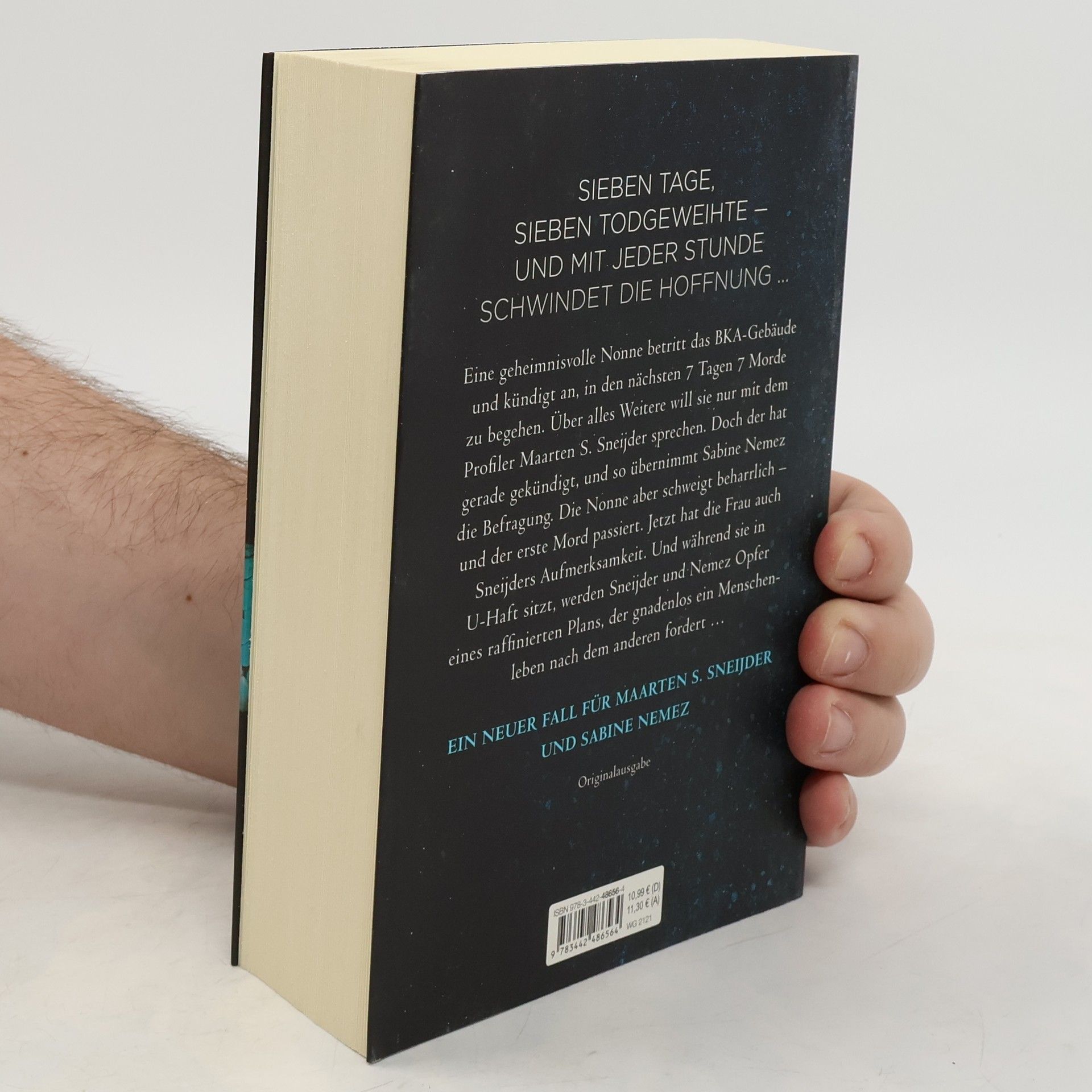 Der neue Thriller des Nr. 1 Spiegel Bestsellerautors. Der neue Fall für Sneijder und Nemez.Eine geheimnisvolle Nonne betritt das BKA-Gebäude in Wiesbaden und kündigt an, in den nächsten 7 Tagen 7 Morde zu begehen. Über alles Weitere will sie nur mit dem Profiler Maarten S. Sneijder sprechen. Doch der hat gerade gekündigt, und so befragt Sneijders Kollegin Sabine Nemez die Nonne. Aber die schweigt beharrlich – und der erste Mord passiert. Jetzt hat sie auch Sneijders Aufmerksamkeit. Und während die Nonne in U-Haft sitzt, werden Sneijder und Nemez Opfer eines raffinierten Plans, der gnadenlos ein Menschleben nach dem anderen fordert und dessen Ursprung in einer grausamen, dunklen Vergangenheit liegt … Der fünfte Fall für Sneijder und Nemez.