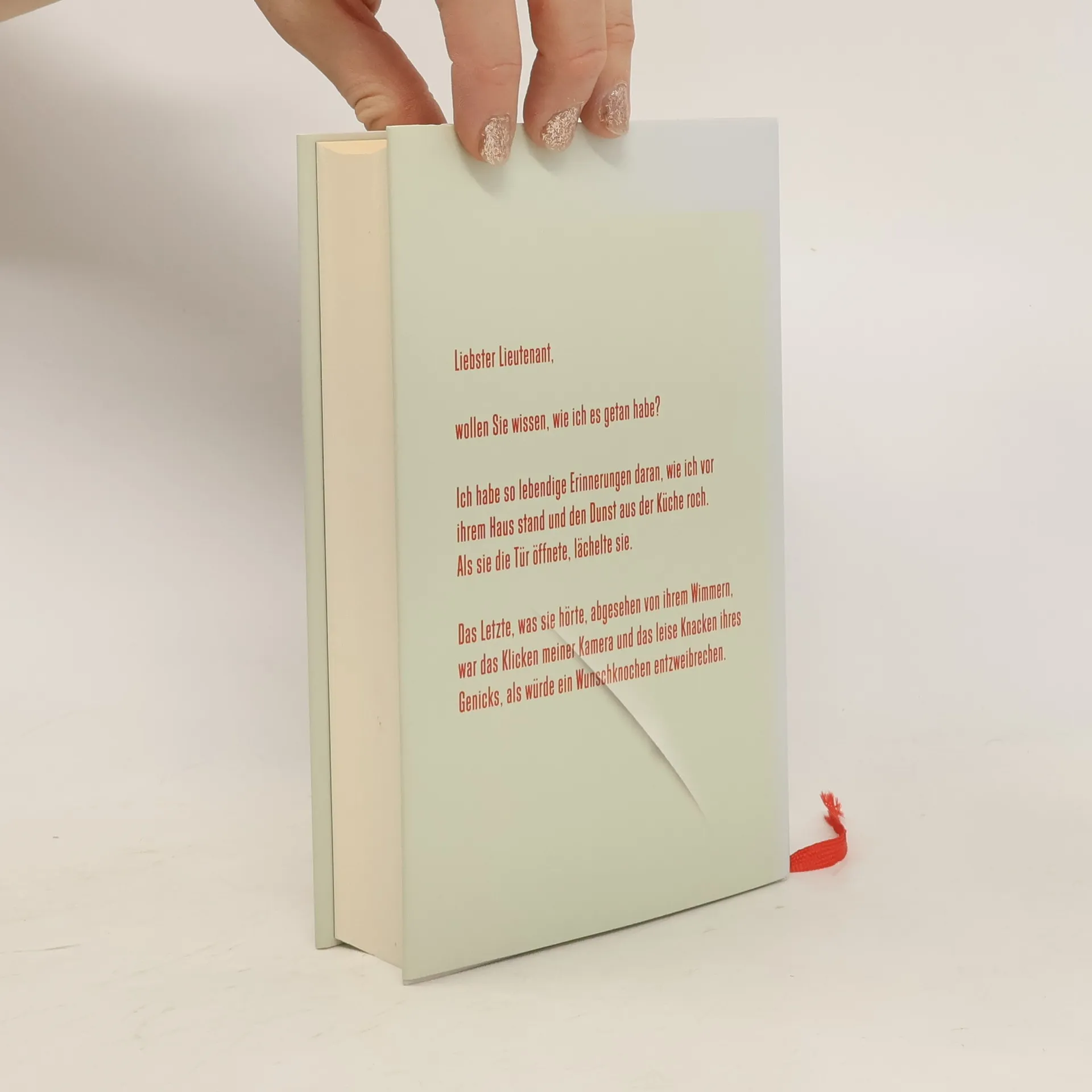 Liebster Lieutenant, wollen Sie wissen, wie ich es getan habe? Ich habe so lebendige Erinnerungen daran, wie ich vor ihrem Haus stand und den Dunst aus der Küche roch. Als sie die Tür öffnete, lächelte sie. Das Letzte, was sie hörte, abgesehen von ihrem Wimmern, war das Klicken meiner Kamera und das leise Knacken ihres Genicks, als würde ein Wunschknochen entzweibrechen.