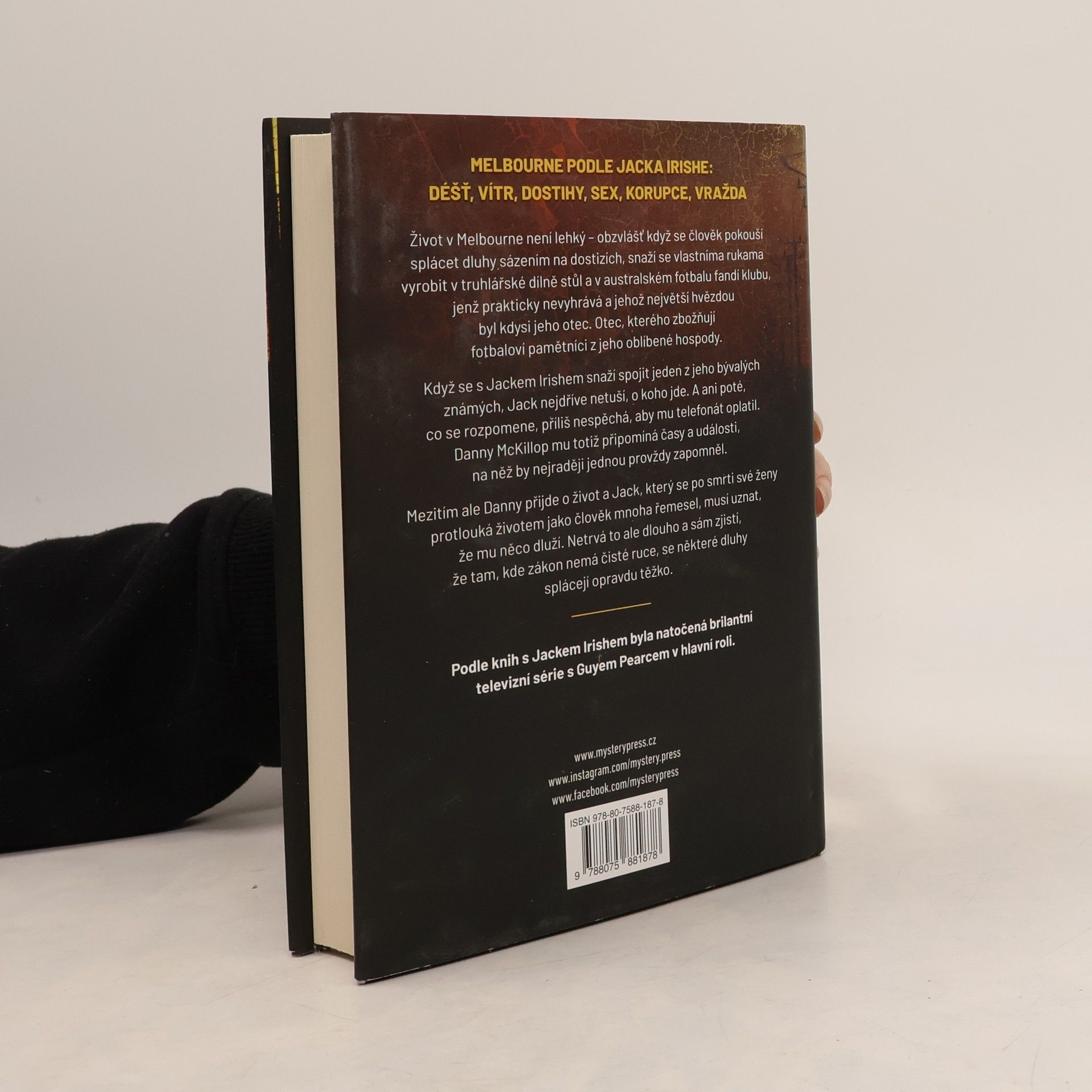 MELBOURNE PODLE JACKA IRISHE: DÉŠŤ, VÍTR, DOSTIHY, SEX, KORUPCE, VRAŽDA Život v Melbourne není lehký – obzvlášť když se člověk pokouší splácet dluhy sázením na dostizích, snaží se vlastníma rukama vyrobit v truhlářské dílně stůl a v australském fotbalu fandí klubu, jenž prakticky nevyhrává a jehož největší hvězdou byl kdysi jeho otec. Otec, kterého zbožňují fotbaloví pamětníci z jeho oblíbené hospody. Když se s Jackem Irishem snaží spojit jeden z jeho bývalých známých, Jack nejdříve netuší, o koho jde. A ani poté, co se rozpomene, příliš nespěchá, aby mu telefonát oplatil. Danny McKillop mu totiž připomíná časy a události, na něž by nejraději jednou provždy zapomněl. Mezitím ale Danny přijde o život a Jack, který se po smrti své ženy protlouká životem jako člověk mnoha řemesel, musí uznat, že mu něco dluží. Netrvá to ale dlouho a sám zjistí, že tam, kde zákon nemá čisté ruce, se některé dluhy splácejí opravdu těžko. ____ Podle knih s Jackem Irishem byla natočená brilantní televizní série s Guyem Pearcem v hlavní roli.