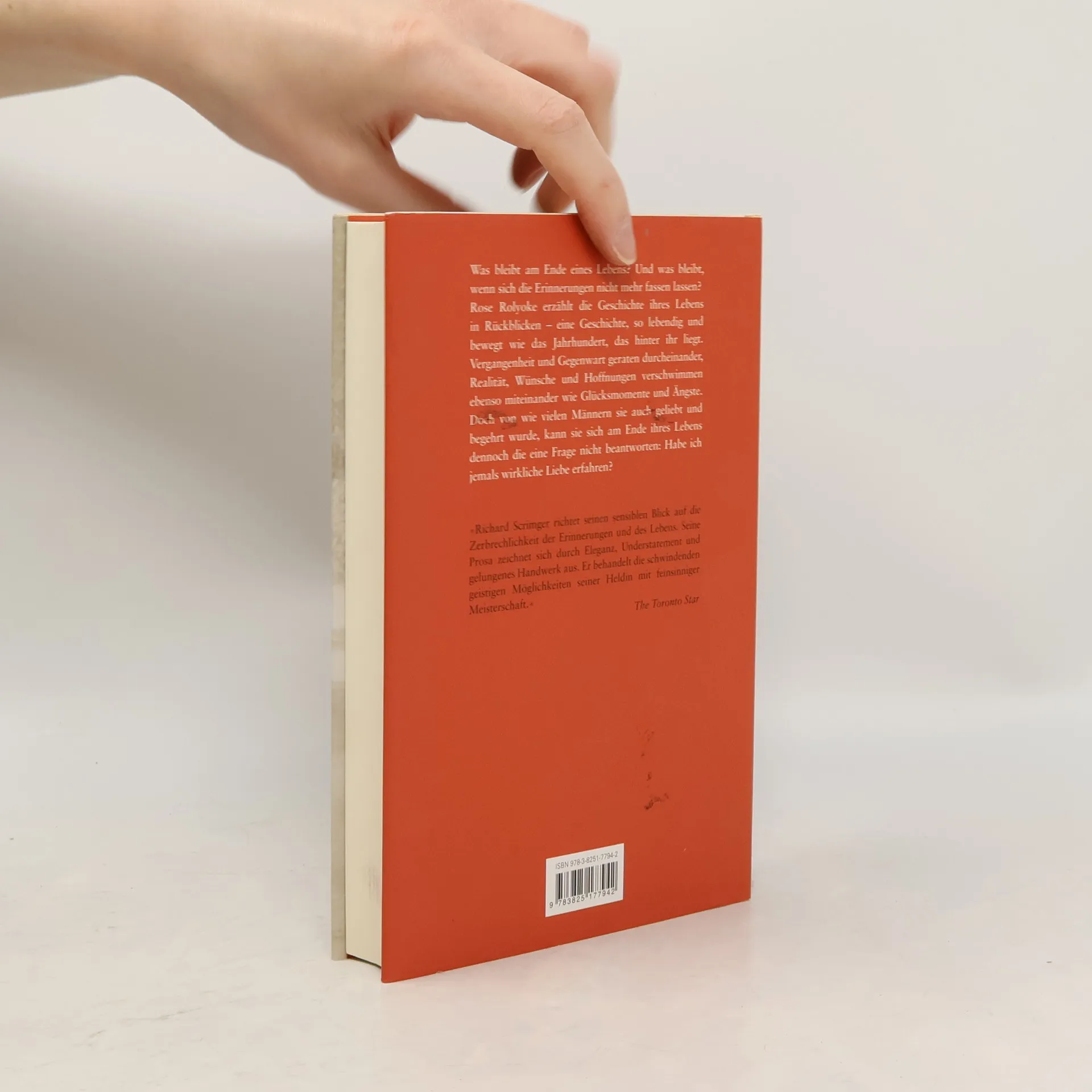Die greise Rose erzählt die Geschichte ihres Lebens in Rückblicken. Dabei vermischen sich Vergangenheit und Gegenwart, Realität und Wünsche gehen ebenso ineinander über wie ihre Gefühle des Glücks und ihre Ängste. War ihre Kindheit erfüllt von Zufriedenheit oder Sorgen? Ihre Ehe ein Paradies oder die Hölle? Und immer wieder die Frage: Hat sie ihre Tochter genügend geliebt? Und hat sie selbst je wahre Liebe erfahren? Richard Scrimger gelingt es eindringlich, seinen Lesern die Welterfahrung eines Menschen mit Demenz aus der Innenperspektive zu vermitteln. Die faszinierende Persönlichkeit seiner Heldin Rose zieht uns von der ersten Seite an in ihren Bann. Ein faszinierender Roman über die Suche nach dem Glück und der Liebe!