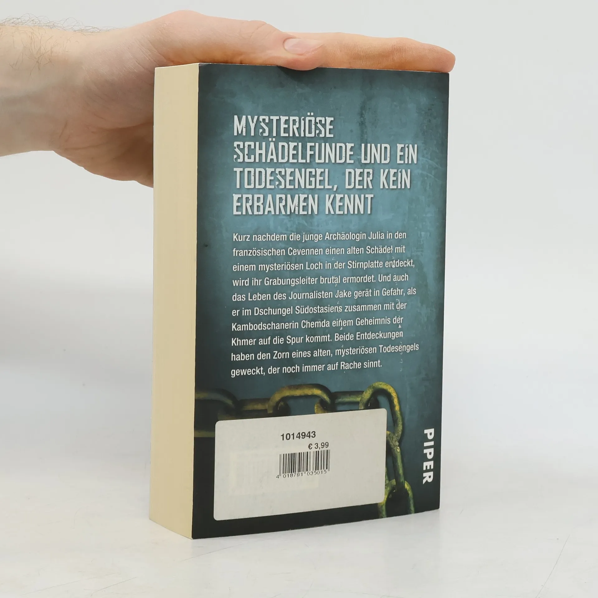 Kurz nachdem die junge Archäologin Julia Kerrigan in den französischen Cevennen einen alten Schädel mit einem mysteriösen Loch in der Stirnplatte entdeckt, wird ihr Grabungsleiter brutal ermordet. Und auch das Leben des Journalisten Jake Thurby gerät in Gefahr, als er im Dschungel Südostasiens zusammen mit der schönen Kambodschanerin Chemda einem Geheimnis der Khmer auf die Spur kommt. Beide Entdeckungen haben den Zorn eines alten, mysteriösen Todesengel geweckt, der noch immer auf Rache sinnt.