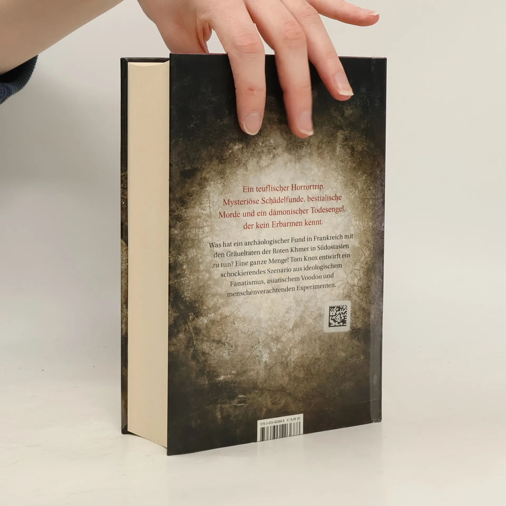 Ein teuflischer Horrortrip! Mysteriöse Schädelfunde, bestialische Morde und ein dämonischer Todesengel, der kein Erbarmen kennt. In den französischen Cevennen macht die junge Archäologin Julia Kerrigan einen spektakulären Fund: Schädel, die ein Loch in der Stirnplatte aufweisen. Kurz nachdem sie dem Grabungsleiter davon erzählt, ist er tot - brutal ermordet. In Südostasien ist unterdessen Journalist Jake Thurby mit der Kambodschanerin Chemda Tek unterwegs. Auf der zweitausend Jahre alten Ebene der Tonkrüge in Laos wollen sie einem Geheimnis auf den Grund gehen. Während in Frankreich ein zweiter Mord geschieht, der Julia in Todesangst versetzt, bricht in Asien eine Verfolgungsjagd auf Jake und Chemda los. In hohem Tempo wechseln die Schauplätze, bis sich langsam offenbart, was Julias, Jakes und Chemdas Schicksal verbindet: eine dämonische Frau, deren unstillbarer Durst nach Rache und deren maßlose Brutalität einem den Atem nehmen. Tom Knox entwirft ein schockierendes Szenario aus ideologischem Fanatismus, asiatischem Voodoo und menschenverachtenden Experimenten.