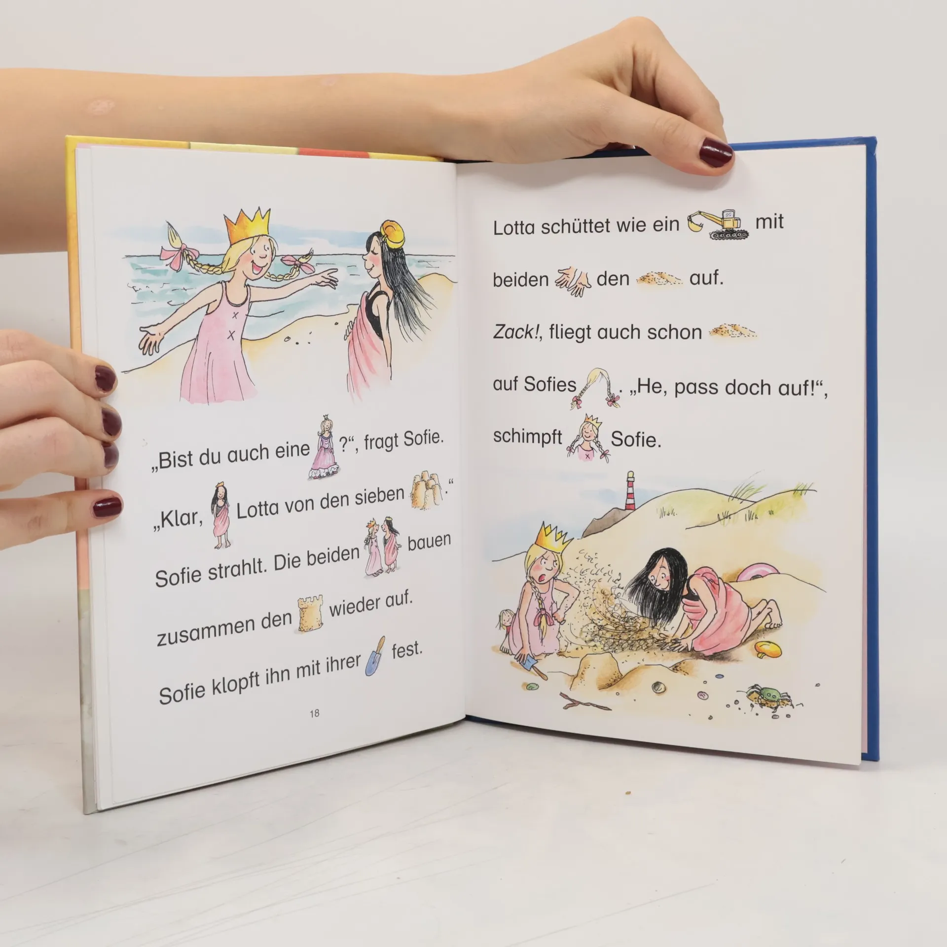 Prinzessin Sofie wünscht sich eine Freundin. Während eines Strandurlaubes lernt sie die äwildeä Lotta kennen, mit der sie sich anfangs nicht versteht, bis sich das Blatt wendet ... Im Text sind die Substantive durch kleine bunte Bilder ersetzt. Zum 1. Mit- und Selberlesen. Für Mädchen ab 5.