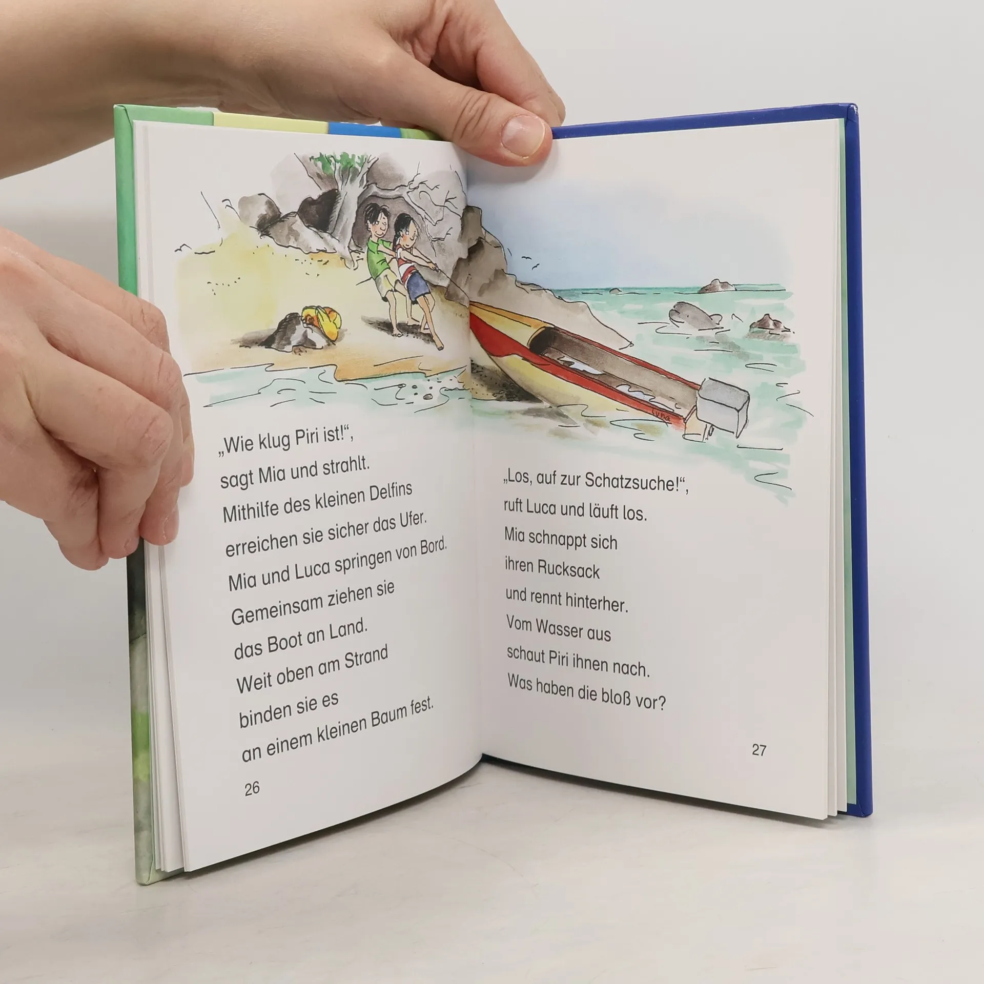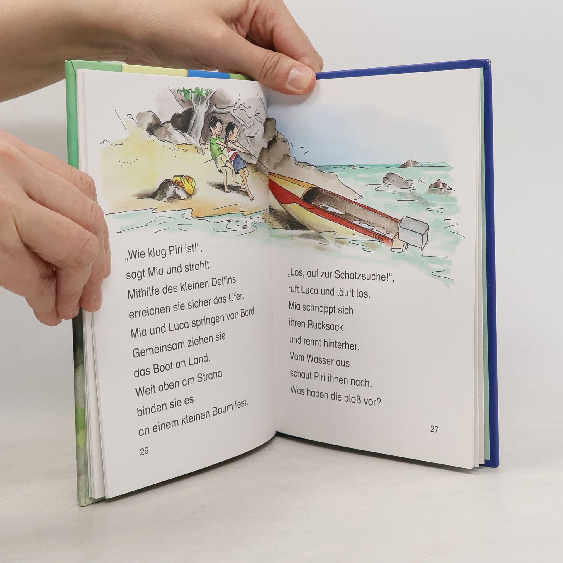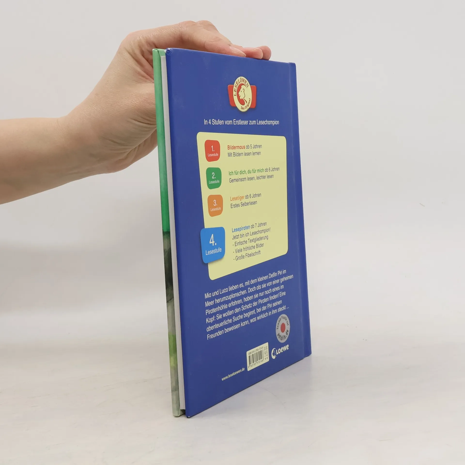 Das Buch ist bei deiner Buchhandlung vor Ort und bei vielen Online-Buchshops erhältlich! Mia und Luca lieben es, mit dem kleinen Delfin Piri im Meer herumzuplanschen. Doch als sie von einer geheimen Piratenhöhle erfahren, haben sie nur noch eines im Kopf: Sie wollen den Schatz finden! Eine abenteuerliche Suche beginnt, bei der Piri seinen Freunden beweisen kann, was wirklich in ihm steckt ... Dieses Kinderbuch aus der 4. Lesestufe Lesepiraten für Kinder ab 7 Jahren (1./2. Klasse) sorgt mit einfachen, kurzen Sätzen in Sinnzeilen und mit seiner großen Fibelschrift für schnellen Erfolg beim Lesenlernen. Die vielen bunten Bilder tragen zusätzlich zum Textverständnis bei. So macht lesen Spaß! Mehr über die Leselöwen , spannende Spiele und Leseproben unter leseloewen. de.