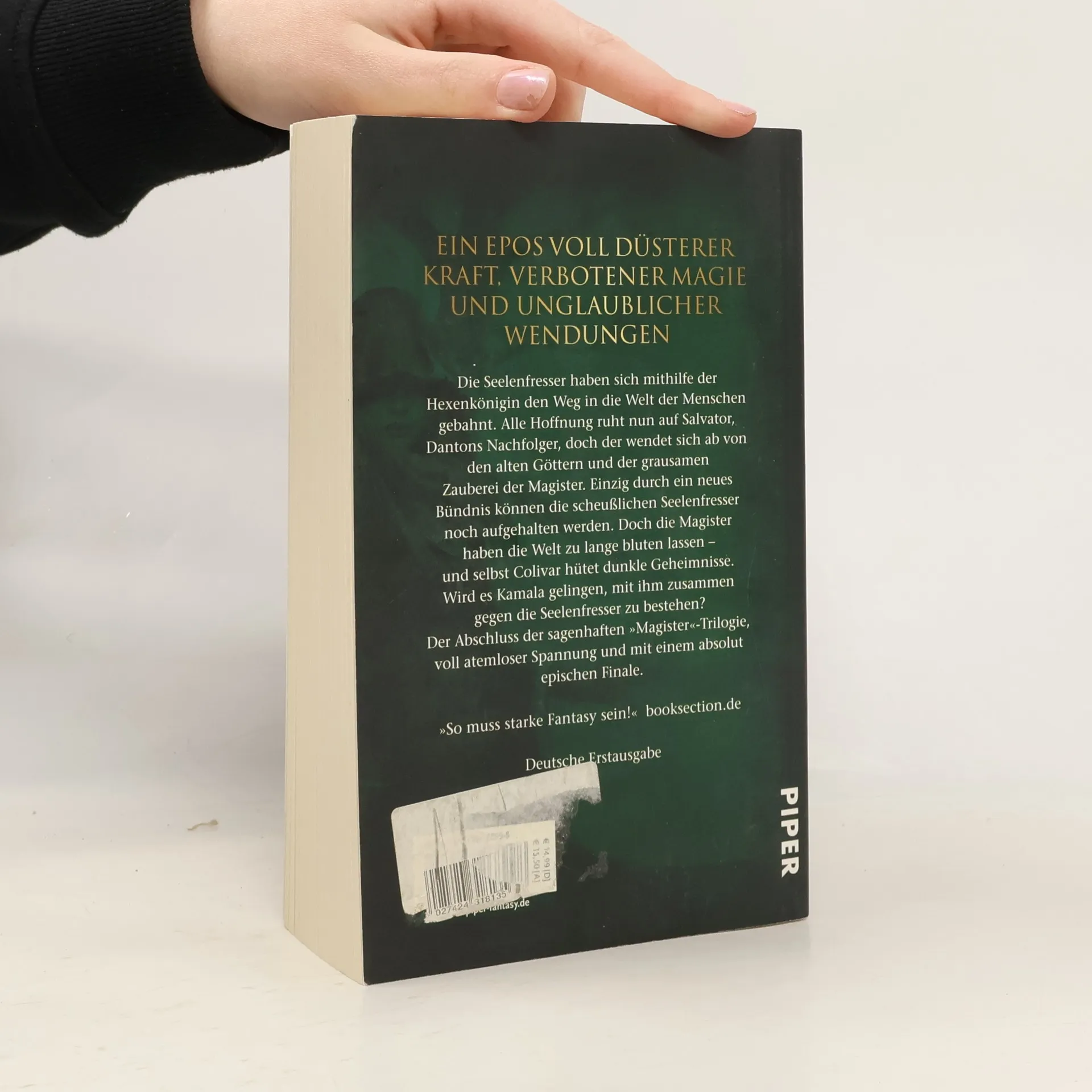 Voll düsterer Kraft, verbotener Magie und unglaublicher Wendungen. Der Kampf gegen die Seelenfresser erreicht seinen spannenden Höhepunkt: Die Hexenkönigin Siderea Aminestas ist entschlossen, sich mithilfe der Ungeheuer an der ganzen Menschheit zu rächen. Während sich der Büßermönch Salvator von den Magistern und ihrer parasitären Zauberei abwendet, um seinem eigenen Glauben zu folgen, bereitet sich Kamala auf die letzte Schlacht vor. Als einzige Frau unter den Magistern ist sie todesmutig genug, um den Seelenfressern entgegen zu treten. Doch dazu muss sie sich mit Colivar verbünden, der selbst dunkle Geheimnisse hütet. Werden die Seelenfresser über die Menschheit herfallen, oder kann Kamala mit ihren Verbündeten in dieser Schlacht doch noch den Sieg erringen?