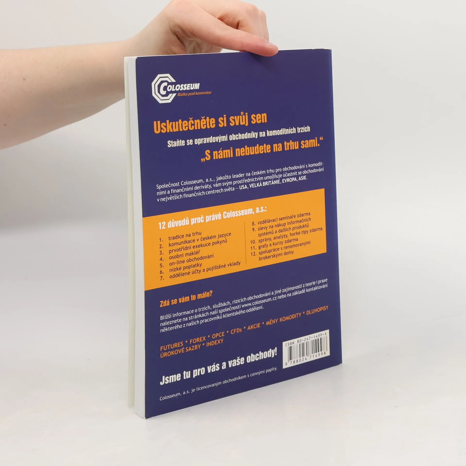 Tato jedinečná publikace, první svého druhu u nás, vás seznámí s praktickou stránkou komoditního obchodování, vysvětlí vám srozumitelnou formou jak a kde se s komoditami obchoduje, jak začít obchodovat s pomocí jednoduché technické analýzy, pomůže s výběrem správného brokera a samozřejmě poskytne i celou řadu důležitých lekcí, rad a tipů. Autoři jsou aktivní obchodníci na komoditních trzích a kniha odráží do značné míry jejich osobní praktické zkušenosti. Obchodování na finančních trzích nemusí být žádnou vědou a nevyžaduje zvláštní vzdělání, ani vysoké finanční požadavky. První vydání.