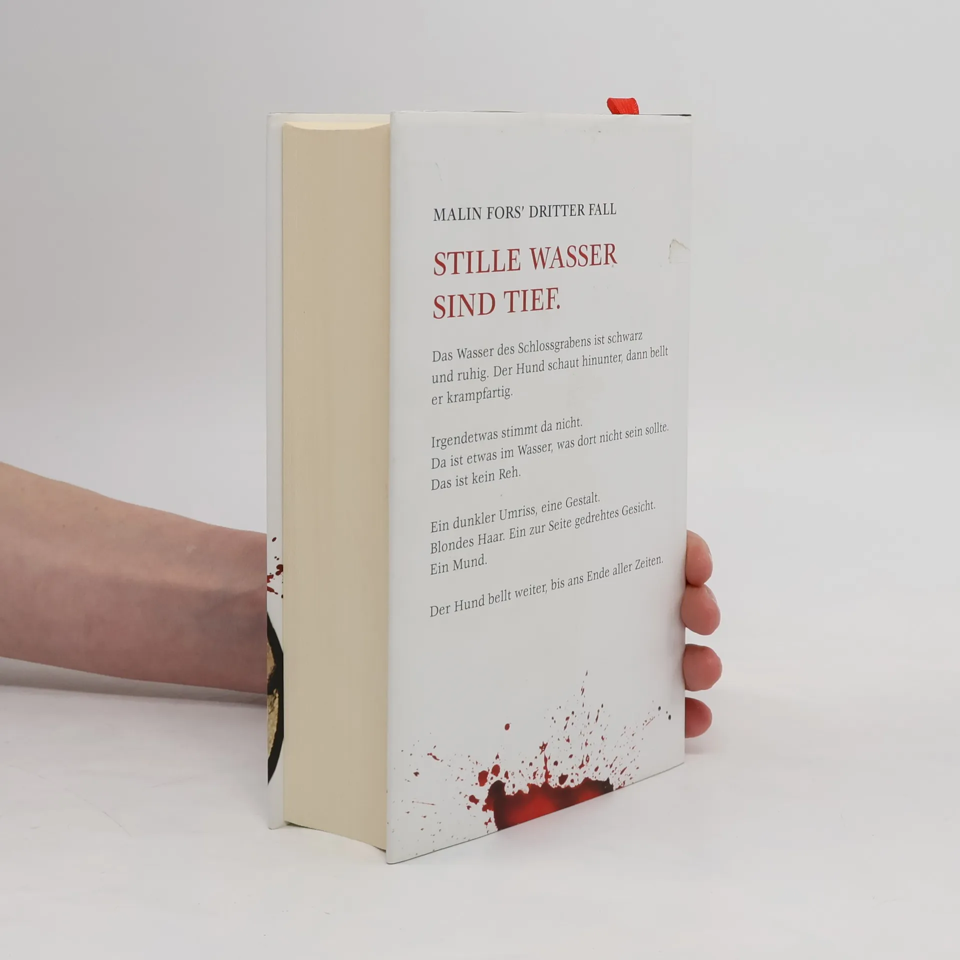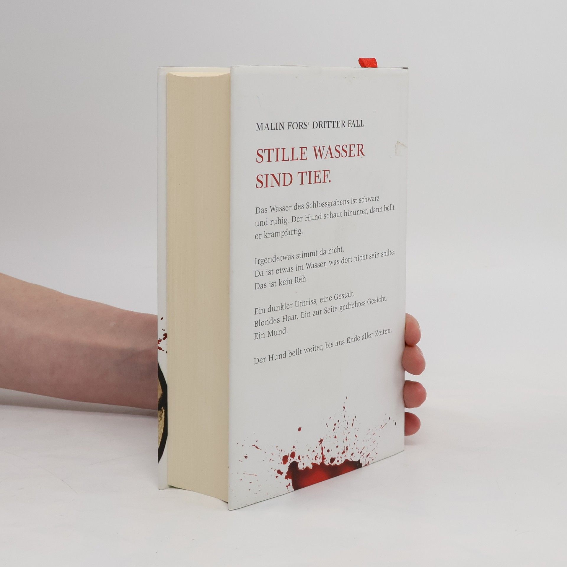 MALIN FORS’ DRITTER FALL Stille Wasser sind tief. Das Wasser des Schlossgrabens ist schwarz und ruhig. Der Hund schaut hinunter, dann bellt er krampfartig. Irgendetwas stimmt da nicht. Da ist etwas im Wasser, was dort nicht sein sollte. Das ist kein Reh. Ein dunkler Umriss, eine Gestalt. Blondes Haar. Ein zur Seite gedrehtes Gesicht. Ein Mund. Der Hund bellt weiter, bis ans Ende aller Zeiten.