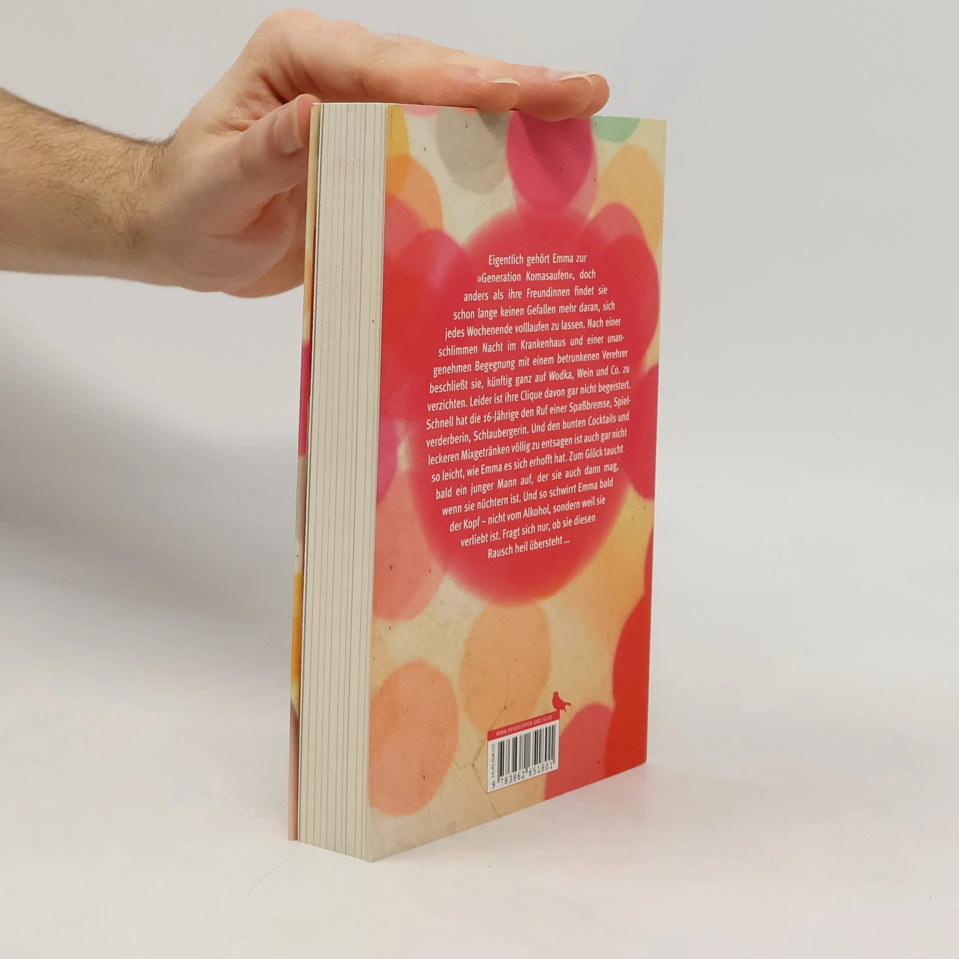 Eigentlich gehört Emma zur »Generation Komasaufen«, doch anders als ihre Freundinnen findet sie schon lange keinen Gefallen mehr daran, sich jedes Wochenende volllaufen zu lassen. Nach einer schlimmen Nacht im Krankenhaus und einer unangenehmen Begegnung mit einem sturzbetrunkenen Verehrer beschließt sie daher, künftig auf Wodka, Wein und Co. zu verzichten. »Lebe lieber alkoholfrei« lautet Emmas neues Motto. Leider ist ihre Clique davon gar nicht begeistert. Schnell hat Emma den Ruf einer Spaßbremse, Spielverderberin, Schlaubergerin. Und den bunten Cocktails und leckeren Mixgetränken gänzlich zu entsagen ist auch gar nicht so leicht, wie es sich die 16-Jährige erhofft hat. Doch zum Glück taucht bald ein junger Mann auf, der Emma auch dann mag, wenn sie nüchtern ist. Und so schwirrt ihr bald der Kopf – nicht weil sie betrunken ist, sondern verliebt. Fragt sich nur, ob sie diesen Rausch heil übersteht …