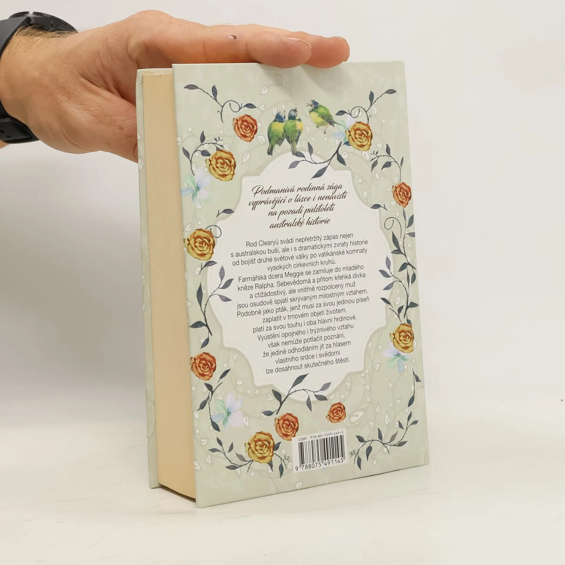 Podmanivá rodinná sága vyprávějící o lásce i nenávisti na pozadí půlstoletí australské historie. Rod Clearyů svádí nepřetržitý zápas nejen s australskou buší, ale i s dramatickými zvraty historie od bojišť druhé světové války po vatikánské komnaty vysokých církevních kruhů. Farmářská dcera Meggie se zamiluje do mladého kněze Ralpha. Sebevědomá a přitom křehká dívka a ctižádostivý, ale vnitřně rozpolcený muž jsou osudově spjatí skrývaným milostným vztahem. Podobně jako pták, jenž musí za svou jedinou píseň zaplatit v trnovém objetí životem, platí za svou touhu i oba hlavní hrdinové. Vyústění opojného i trýznivého vztahu však nemůže potlačit poznání, že jedině odhodláním jít za hlasem vlastního srdce i svědomí lze dosáhnout skutečného štěstí.