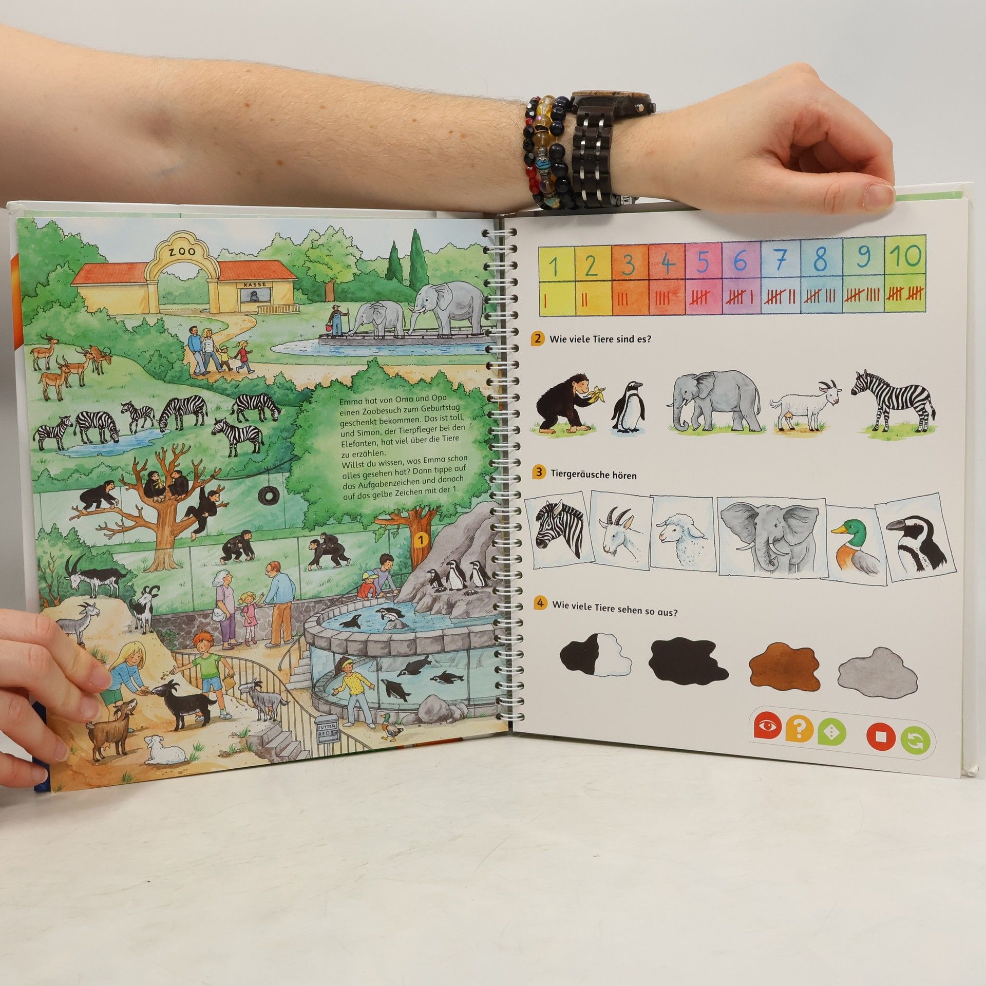 Rechnen im Zahlenraum bis 10 für Vorschulkinder und Erstklässler. Mit dem dazu gehörigen tiptoi-Stift kann man viele Aufgaben, Spiele und Rätsel machen und so ganz spielerisch die Zahlen von 1 bis 10 entdecken