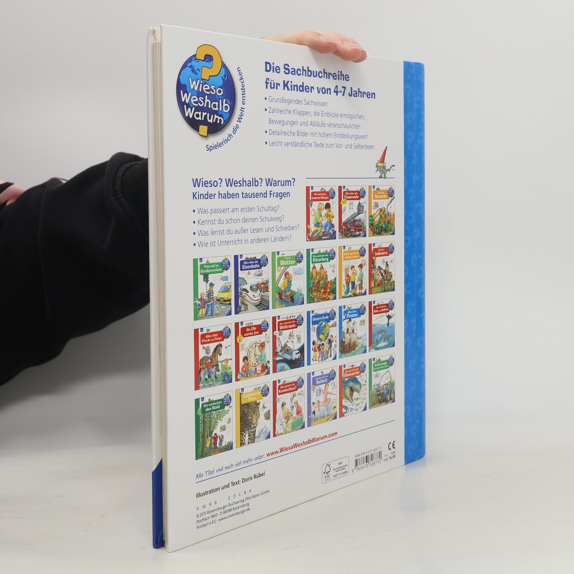 Was erwartet mich in der Schule? Was lerne ich dort? Wie sieht es in einem Klassenzimmer aus? Wozu sind die Pausen da? Dieses Buch macht Kindern Lust auf die Schule und den ersten Schultag. Sie begleiten Tom und Ada beim Aussuchen des Schulranzens, bei ihrer Einschulung und einem Klassenausflug. Auch die verschiedenen Räume in der Schule werden vorgestellt und die Kinder erfahren, worauf man auf dem Schulweg und im Straßenverkehr achten muss. Wieso? Weshalb? Warum? Die Sachbuchreihe für Kinder von 4–7 Jahren Jeden Tag entdecken Kinder etwas Neues – da kommen viele Fragen auf. Warum sind die Dinosaurier ausgestorben? Wo ist die Sonne in der Nacht? Wozu brauchen wir das Blut? Die beliebte Sachbuchreihe Wieso? Weshalb? Warum? gibt Kindern Antworten auf Augenhöhe. Dabei werden die unterschiedlichsten Themen aus der Alltags- und Interessenswelt der Kinder altersgerecht und mit viel Liebe zum Detail unter die Lupe genommen. Detailreiche Bilder, verständliche Sachtexte und überraschende Klappen, die Bewegungen oder Abläufe veranschaulichen und hinter die Dinge blicken lassen, ermöglichen Kindern, sich ihre Themen selbst zu erschließen. Der Spaß am eigenhändigen Entdecken, die liebevolle Umsetzung und die qualitativ hochwertige Ausstattung garantieren langanhaltende Freude an jedem einzelnen Buch.