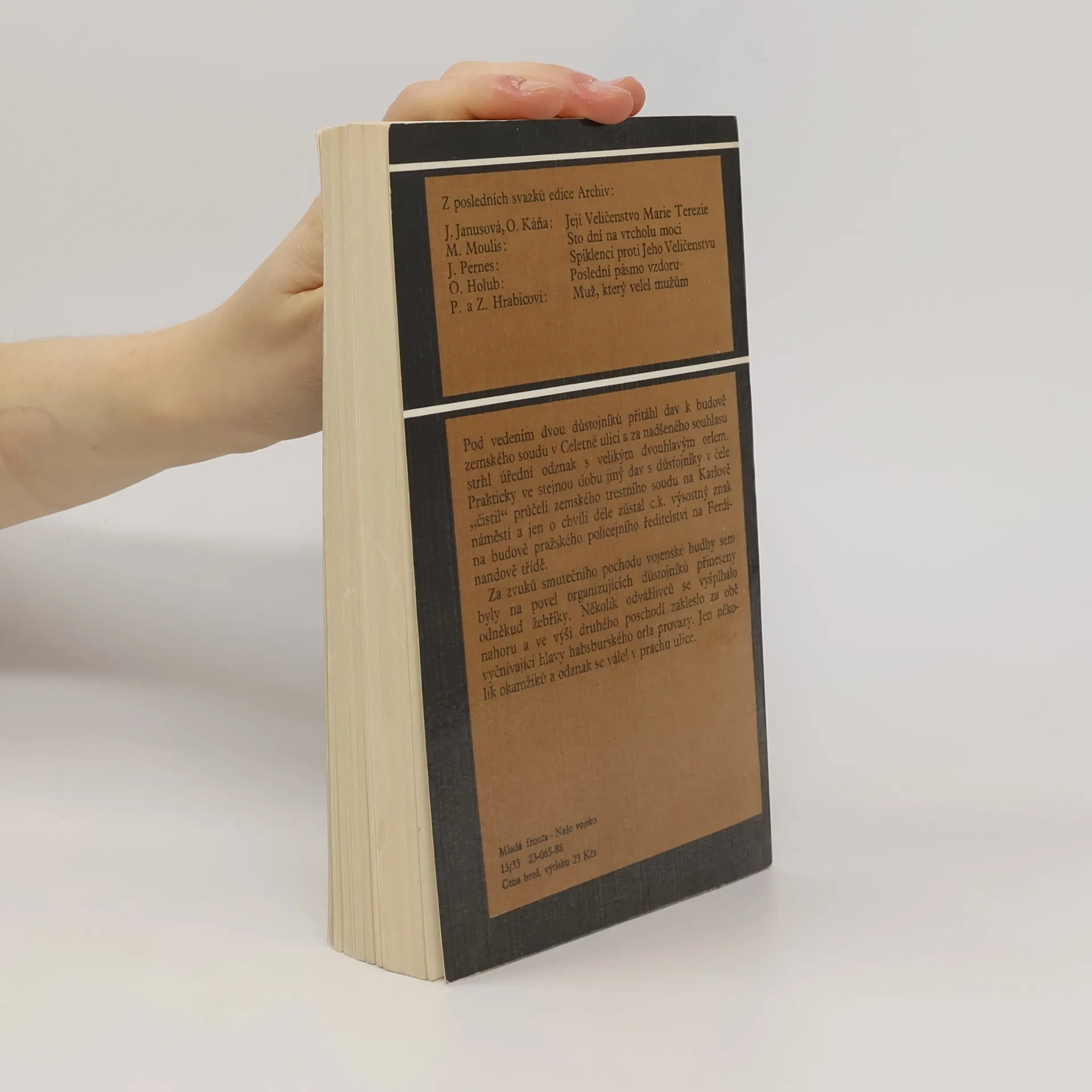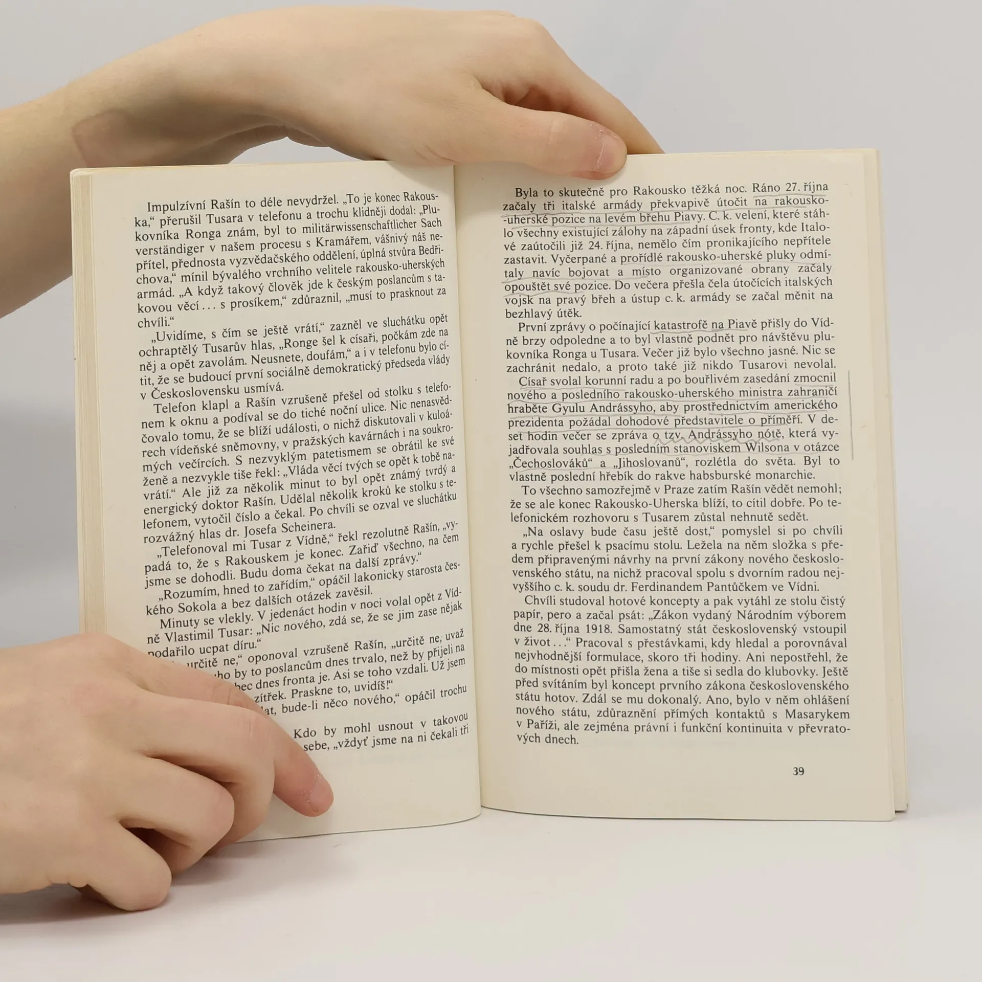 Publikace je popisem, rekonstrukcí i hodnocením událostí tvořících historii vzniku samostatné buržoazní Československé republiky. Národní a demokratická revoluce v roce 1918 tak měla podobu státního převratu, kdy spolu s převzetím politické moci začala československá buržoazie od saméhopočátku programově vytvářet své vlastní mocenské orgány, včetně československé armády. Podrobně je objasněna úloha jednotlivých politiků a jejich angažmá při vzniku nového státu (A. Rašín, K. Kramář, V. Šrobár, V. Tusar, J. Scheiner). Zároveň autor líčí i události v Brně, na Moravě, na Slovensku a jednání o příměří v Bělehradu. Text nekončí vyhlášením nového státu, ale přechází až k vytvoření Národního shromáždění a jeho prvních politických rozhodnutí. Odborně lektorovali: Doc. PhDr. Jan Galandauer, CSc., PhDr. Ladislav Skalický, CSc., RSDr. Jan Staněk, CSc. 304 stran textu, 32 stran přílohy. Vydala Mladá fronta a Naše vojsko. Vydání 1.