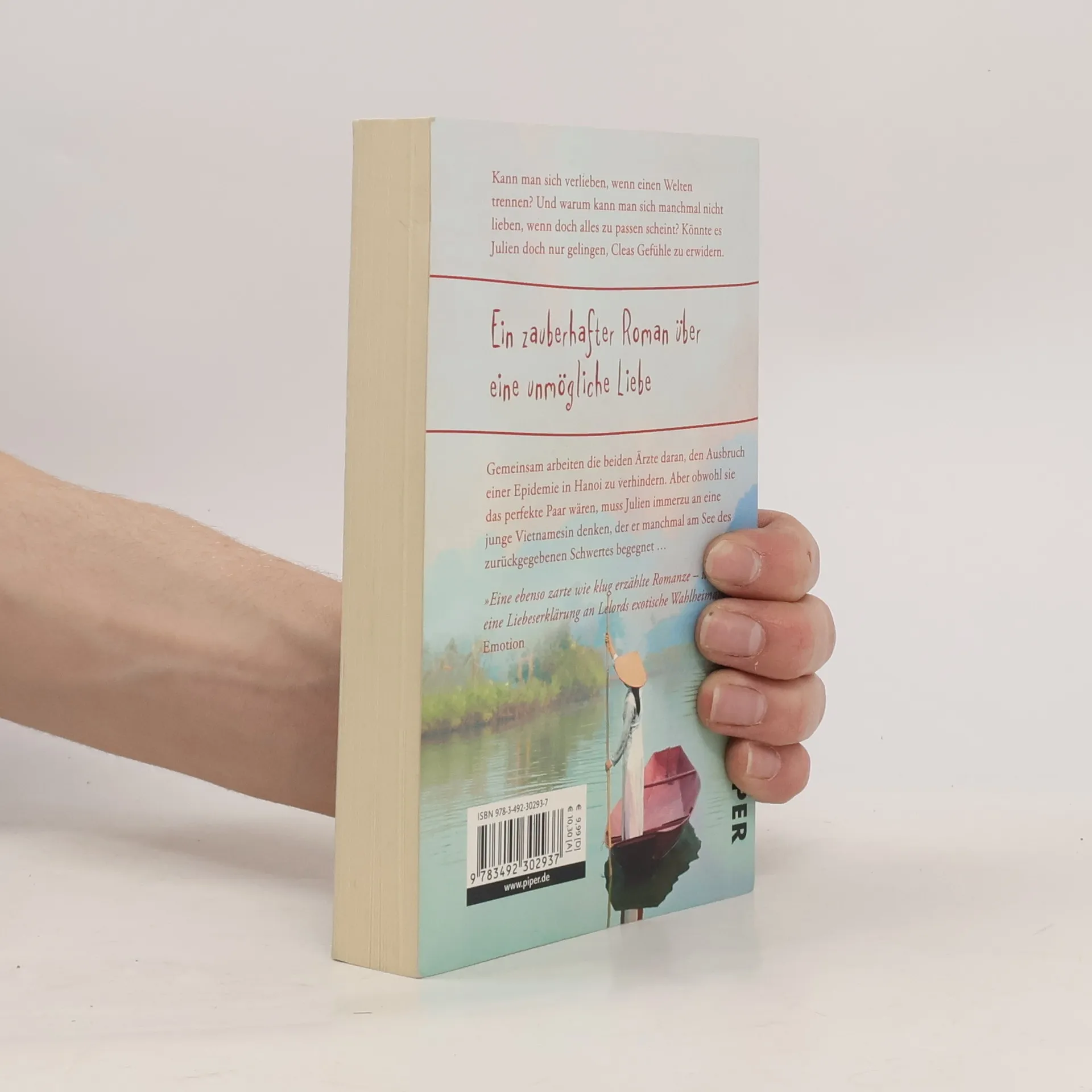 Kann man sich verlieben, wenn einen Welten trennen? Und warum kann man sich manchmal nicht lieben, wenn doch alles zu passen scheint? Könnte es Julien doch nur gelingen, Cleas Gefühle zu erwidern. Gemeinsam arbeiten die beiden Ärzte daran, den Ausbruch einer Epidemie in Hanoi zu verhindern. Aber obwohl sie das perfekte Paar wären, muss Julien immerzu an eine junge Vietnamesin denken, der er manchmal am See des zurückgegebenen Schwertes begegnet …