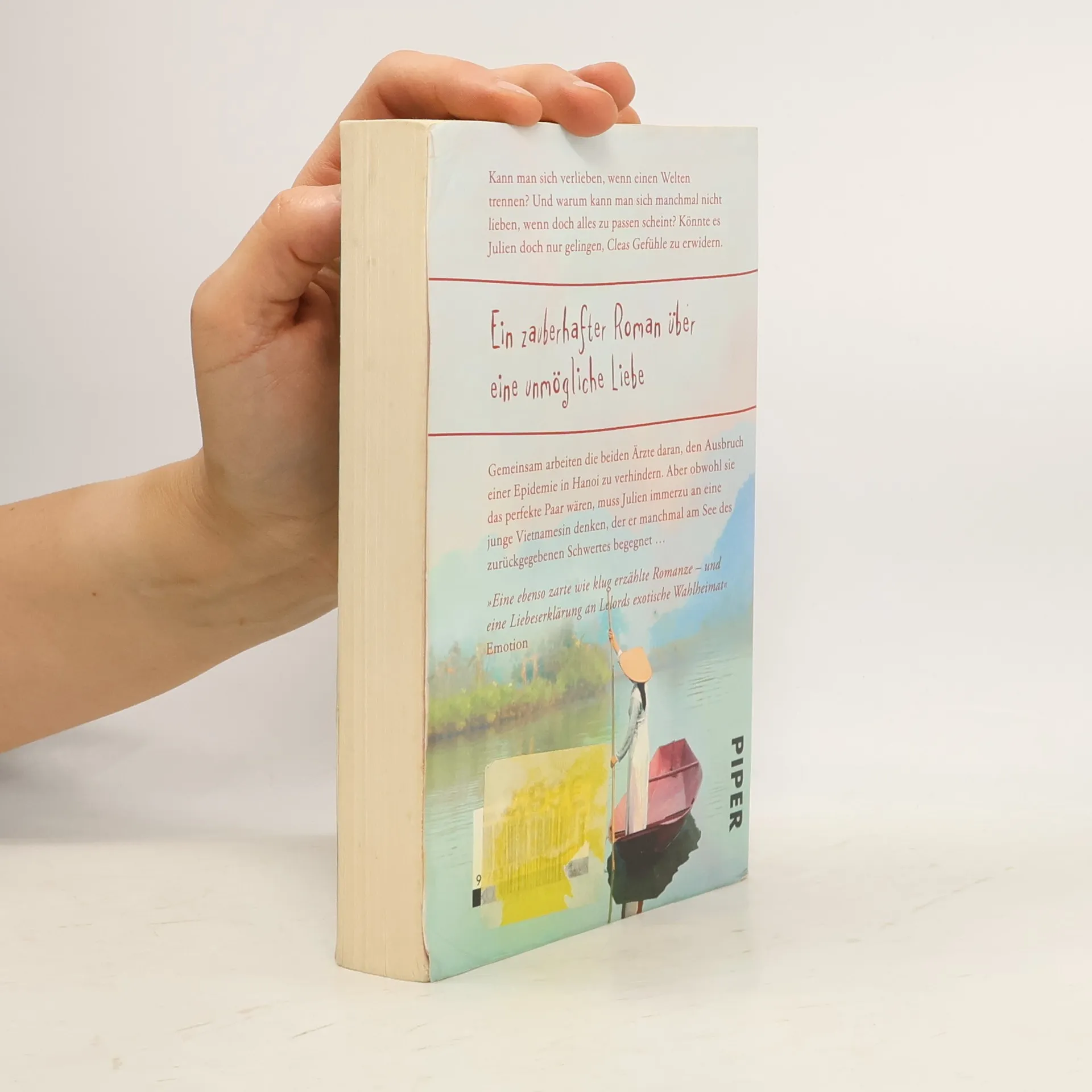 Kann man sich verlieben, wenn einen Welten trennen? Und warum kann man sich manchmal nicht lieben, wenn doch alles zu passen scheint? Könnte es Julien doch nur gelingen, Cleas Gefühle zu erwidern. Gemeinsam arbeiten die beiden Ärzte daran, den Ausbruch einer Epidemie in Hanoi zu verhindern. Aber obwohl sie das perfekte Paar wären, muss Julien immerzu an eine junge Vietnamesin denken, der er manchmal am See des zurückgegebenen Schwertes begegnet …