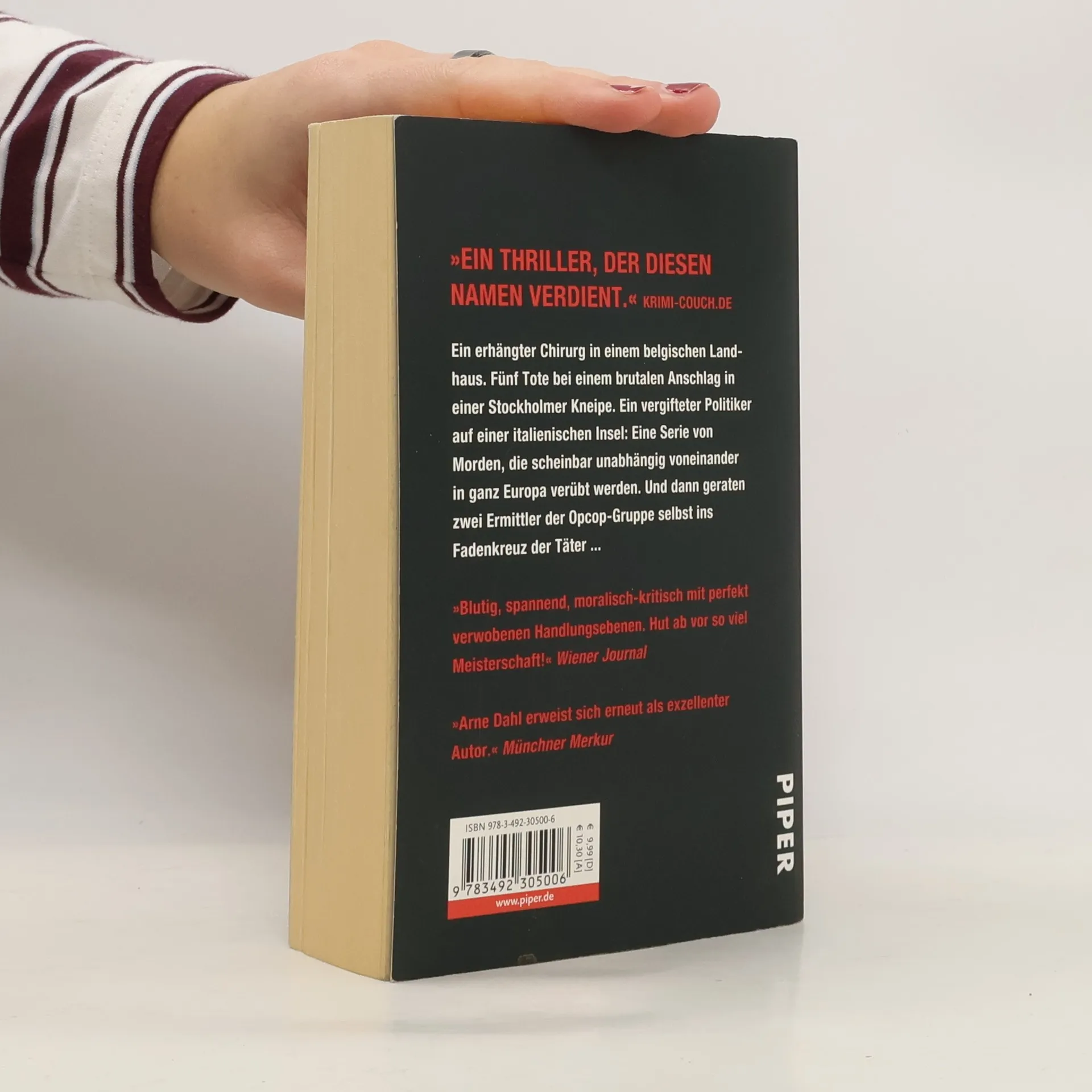 Ein erhängter Chirurg in einem belgischen Landhaus. Fünf Tote bei einem brutalen Anschlag in einer Stockholmer Kneipe. Ein vergifteter Politiker auf einer italienischen Insel: Eine Serie von Morden, die scheinbar unabhängig voneinander in ganz Europa verübt werden. Und dann geraten zwei Ermittler der Opcop-Gruppe selbst ins Fadenkreuz der Täter ...