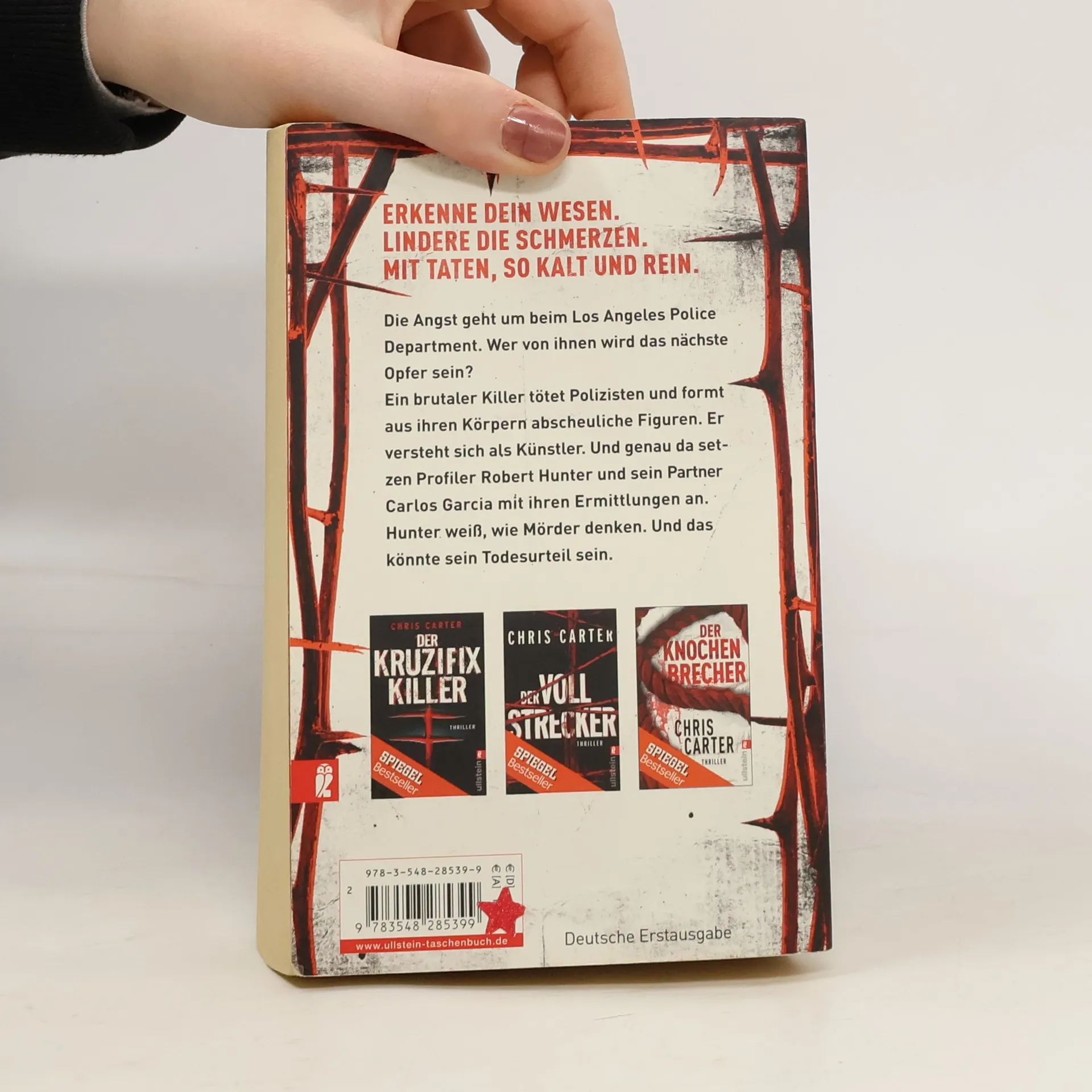 Die Angst geht um beim Los Angeles Police Department. Wer von ihnen wird das nächste Opfer? Ein brutaler Mörder tötet Polizisten und formt aus ihren Körpern abscheuliche Figuren. Er versteht sich als Künstler. Und genau da setzen Profiler Robert Hunter und sein Partner Carlos Garcia mit ihren Ermittlungen an. Hunter weiß, wie Mörder denken. Und das könnte sein Todesurteil sein.