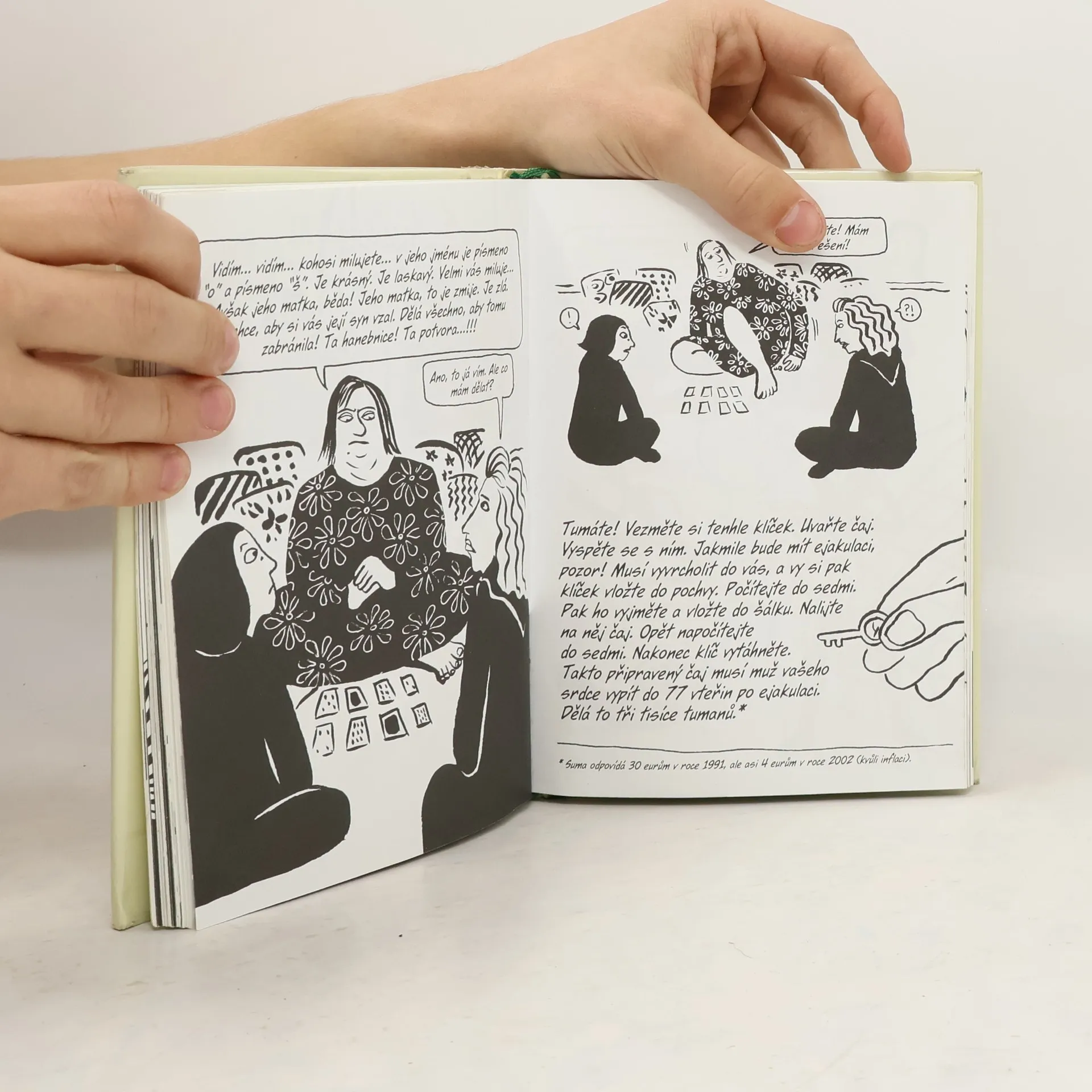 Tahle knížka je vlastně záznam důvěrných rozhovorů íránských žen, příbuzných i známých autorky, které upřímně i vtipně probírají intimní, rodinné i širší záležitosti. Název odkazuje žertovným tónem na jistou praktiku: ženy v Íránu si někdy před svatbou, aby jejich ženich neměl pocit, že byl ukrácen na svých patriarchálních právech a ošizen na zboží, nechávají chirurgicky sešít porušenou panenskou blánu. Devět dam, včetně Marjaniny babičky a matky, bez přítomnosti mužů probírá vše možné od volby (či nemožnosti volby) ženicha přes kvality mužů na Západě až po plastickou chirurgii. Velmi komorní, ale působivé dílko, ve kterém autorka znovu prokázala, že je mistryní psychologické drobnokresby a vykreslování povah – a navíc že k tomu, aby vytvořila zásadní grafický román, nepotřebuje dějinné a převratné události jako ve svém nejslavnějším díle, Persepoli.