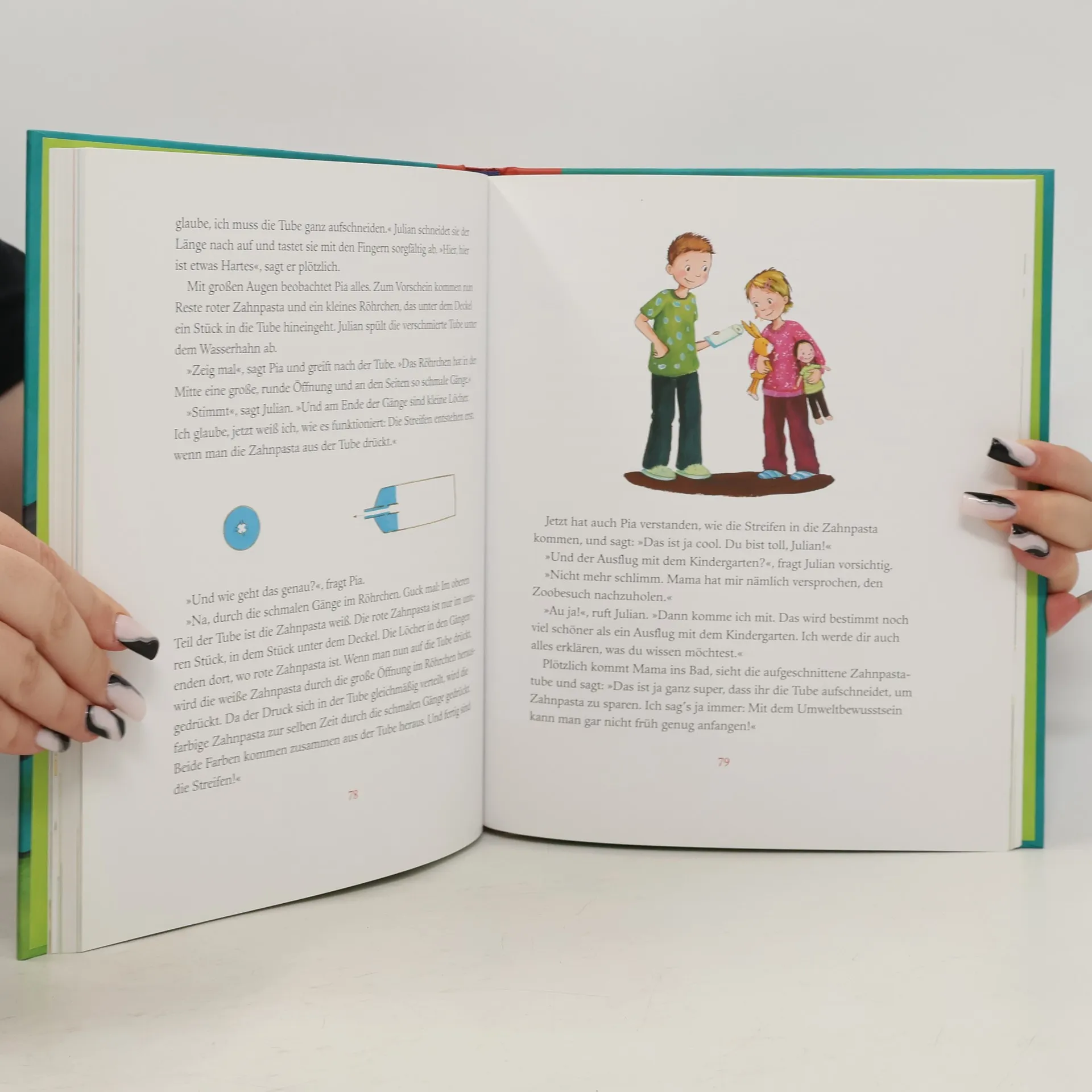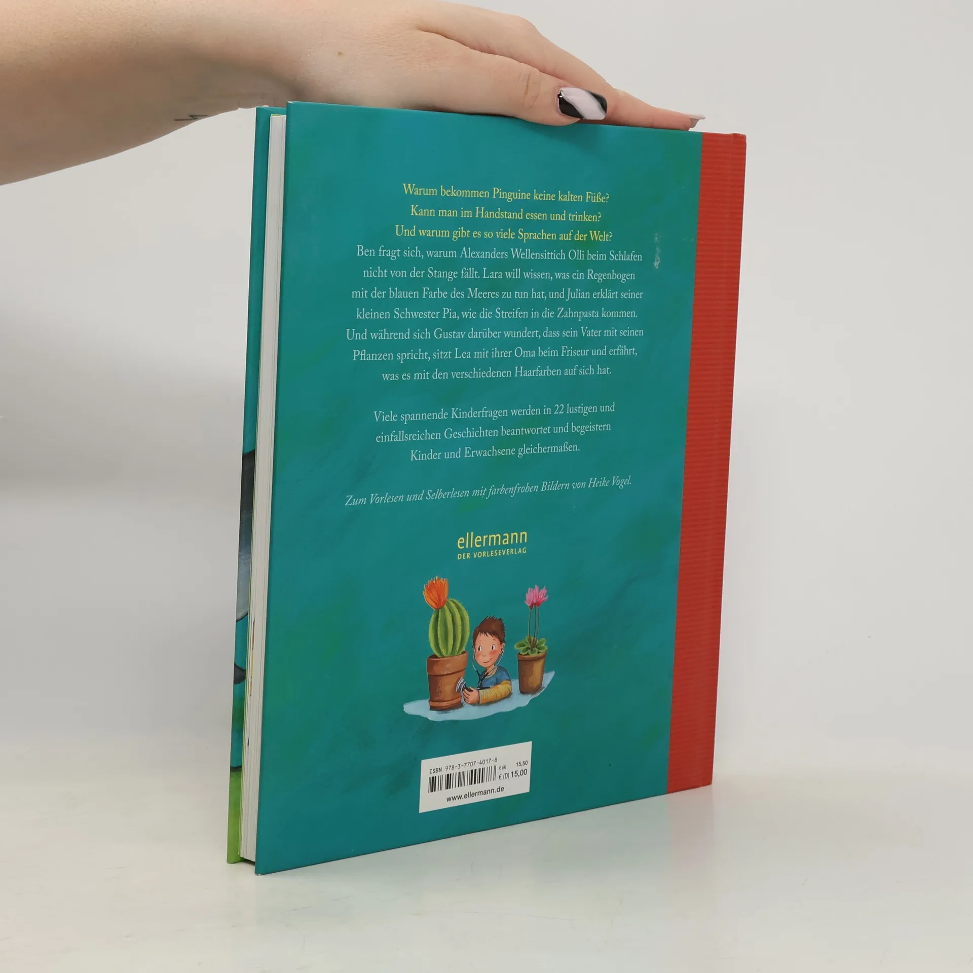 In diesem Buch wird die Neugier junger Leser auf spielerische und lehrreiche Weise geweckt. Es nimmt Kinder mit auf eine faszinierende Entdeckungsreise durch die Welt der Tiere und Phänomene. Mit 22 unterhaltsamen Vorlesegeschichten werden Fragen wie „Können sich Pflanzen unterhalten?“ oder „Warum bekommen Pinguine keine kalten Füße?“ kindgerecht erklärt. Jede Geschichte vermittelt Wissen und sorgt für Vorlesespaß für die ganze Familie. Die Autoren erzählen komplexe Sachverhalte einfach und unterhaltsam, sodass auch Eltern etwas dazulernen können. Der innovative Ansatz, wissenschaftliche Fragen in spannende Geschichten zu verpacken, macht komplexe Themen für Kinder verständlich und interessant. Die Kombination aus Sachinformation und Erzählung regt die natürliche Neugier an und stillt den Wissensdurst. Ob es um die Erklärung geht, warum Haie ständig neue Zähne nachwachsen oder warum das Faultier seinen Namen zu Unrecht trägt – jedes Thema fesselt die jungen Leser und bringt sie zum Staunen. Die Geschichten werden von liebevollen, farbenfrohen Illustrationen begleitet, die das Interesse zusätzlich wecken. Ideal zum Vorlesen und für erste Leseversuche, unterstützt das Buch die Entwicklung der Lesefähigkeit und des Textverständnisses. Es bietet eine gelungene Mischung aus Bildung und Unterhaltung, die das gemeinsame Lesen zu einem Vergnügen für die ganze Familie macht.