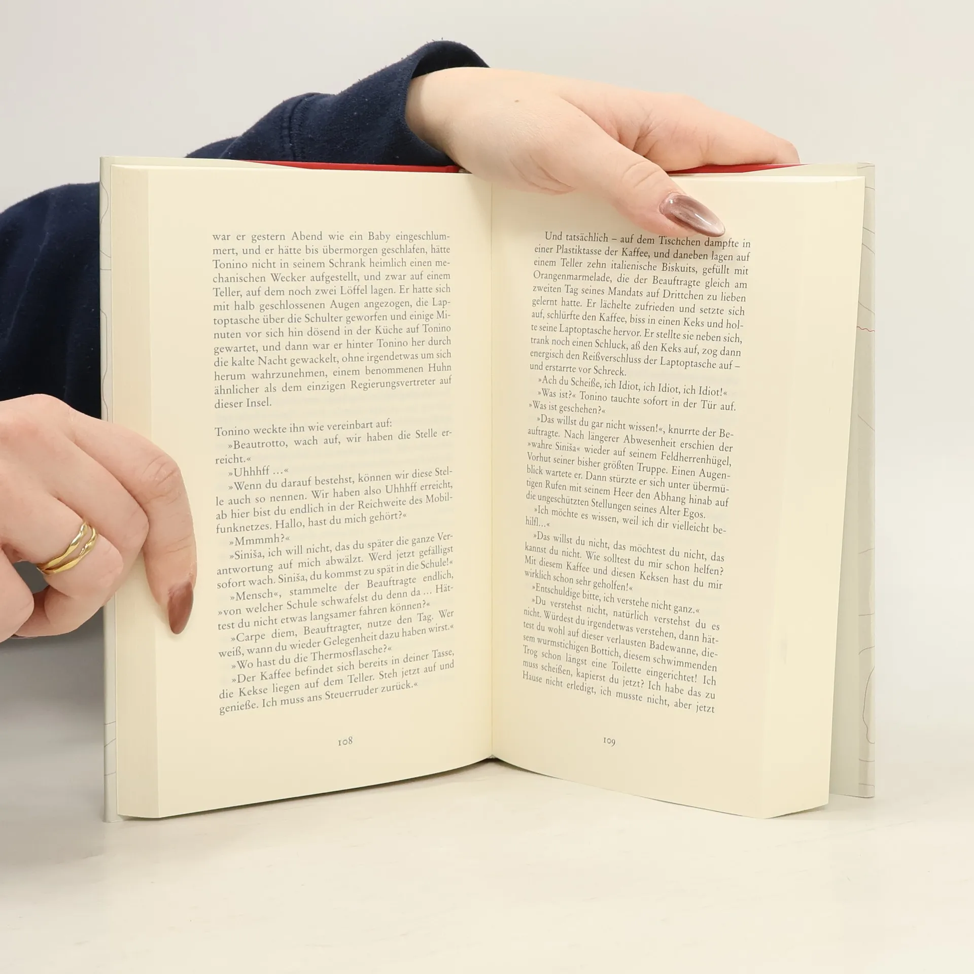 Der Politiker Siniša wird von der Regierung als Beauftragter auf eine weit entlegene Adria-Insel geschickt. Drittchen ist eine erfundene Insel, die keine Anbindung ans Festland hat, auf der es keine Telefone, kein Internet und auch keinen Mobilfunk gibt. Strom wird durch Solarzellen erzeugt, die neuesten Kaffeemaschinen oder medizinischen Geräte werden aus Italien herbeigeschafft. Auf der Insel leben alte Leute, die einst als Bergleute in Australien gearbeitet haben und nun in der alten Heimat über italienische Schmuggler ihre Rente beziehen. Unter ihnen lebt der Bosnier Samir, der sich auf der Insel vor der Mafia in Sicherheit gebracht hat, genauso wie die bosnische Porno-Darstellerin Zehra – beide sind neben Tonino, der Siniša als Übersetzer und Begleiter zur Seite gestellt wurde, die einzigen jungen Menschen auf der Insel. Zwischen Tonino und Zehra entwickelt sich eine Liebesbeziehung. Die Bewohner der Insel wollen mit dem Festland nichts zu tun haben. Fern von den Machtspielen und politischen Intrigen, von der Korruption und von der Bürokratie, leben die Inselbewohner in einer atemberaubend schönen mediterranen Landschaft fern aller Probleme unserer globalisierten Welt. Siniša, ein gestresster, urbaner Mensch, lernt auf der Insel Gelassenheit, Langsamkeit und Konzentration auf die wesentlichen Dinge. Ein wunderbar satirischer Roman mit der Leichtigkeit des Südens geschrieben.