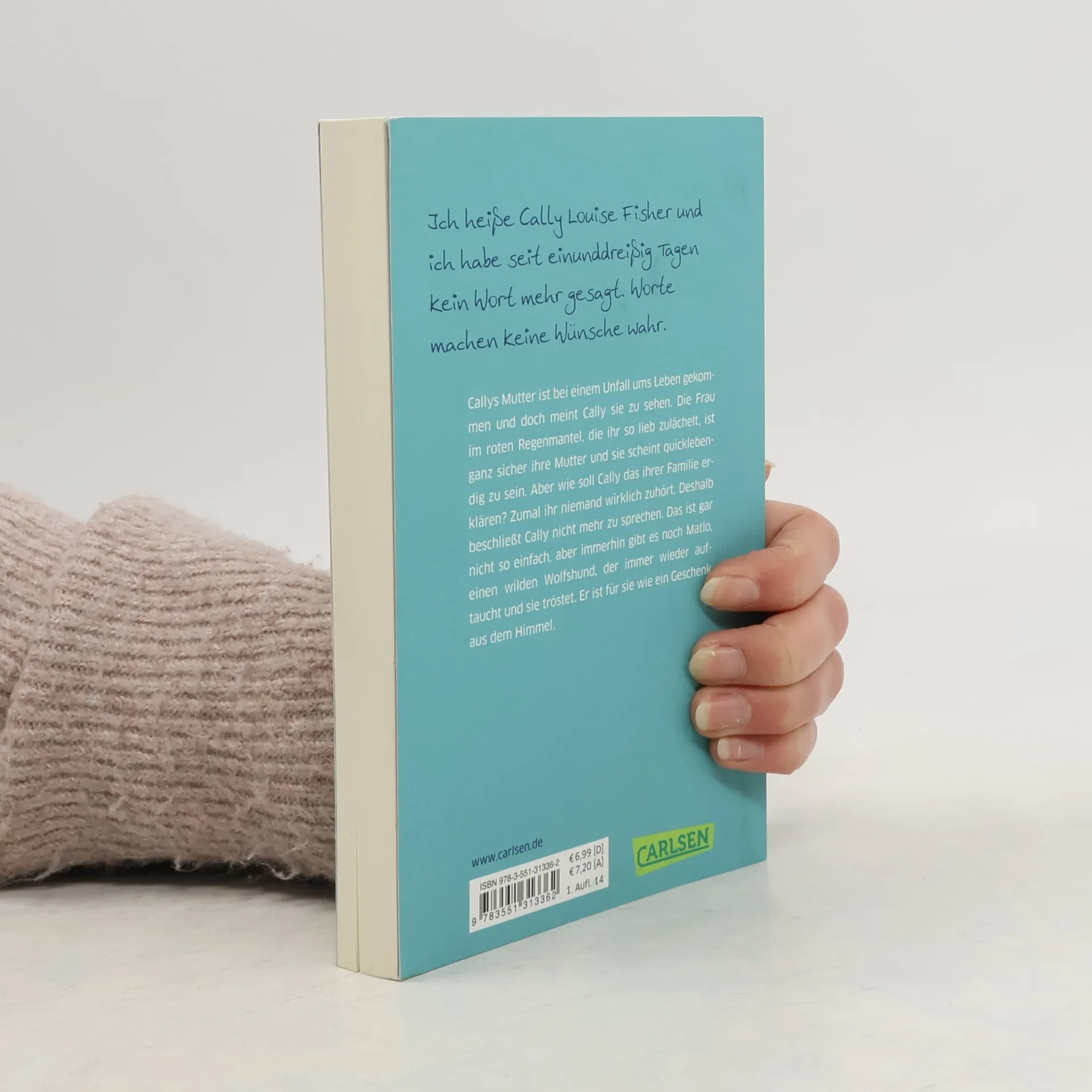 Callys Mutter ist bei einem Unfall ums Leben gekommen, und doch meint Cally sie zu sehen. Die Frau im roten Regenmantel, die ihr so lieb zulächelt, ist ganz sicher ihre Mutter und sie scheint quicklebendig zu sein. Aber wie soll Cally das ihrer Familie erklären? Zumal ihr niemand wirklich zuhört. Deshalb beschließt Cally, einfach nicht mehr zu sprechen. Immerhin gibt es noch Matlo, einen wilden Wolfshund, der immer wieder auftaucht und sie tröstet. Er ist für sie wie ein Geschenk aus dem Himmel, das Cally zeigt: Sie ist nicht allein.
