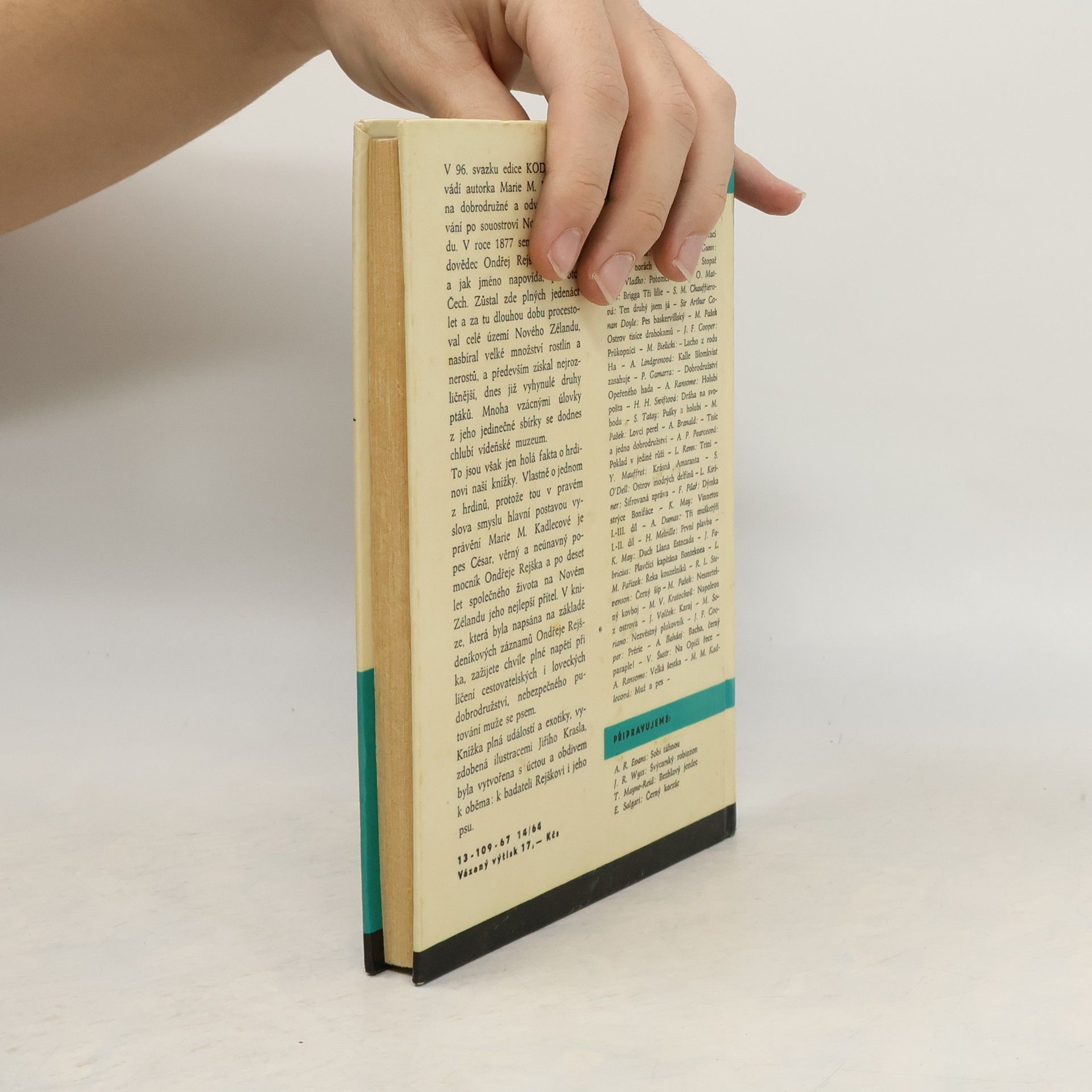 Dobrodružné a odvážné putování po souostroví Nového Zélandu. V roce 1877 sem přijel přírodovědec Ondřej Rejšek. Zůstal zde plných jedenáct let a za tu dlouhou dobu procestoval celé území Nového Zélandu, nasbíral velké množství rostlin a nerostů, a především získal nejrozličnější, dnes již vyhynulé druhy ptáků. Mnoha vzácnými úlovky z jeho jedinečné sbírky se dodnes chlubí vídeňské muzeum. Knížka plná událostí a exotiky, vyzdobená ilustracemi Jiřího Krasla, byla vytvořena s úctou a obdivem k badateli Rejškovi i jeho psu.