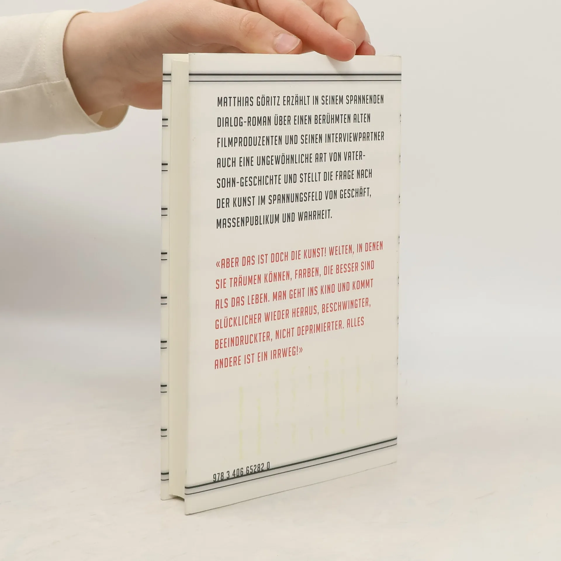 Ein junger Journalist erhält die Chance, ein Interview mit einer Schlüsselfigur des deutschen Kinos zu führen, einem alternden, schillernden Produzenten. Der hat, schon von Krankheit gezeichnet, all seine Mittel und Ideen in das Film-Projekt „Gleiwitz“ investiert, in dem es um den arrangierten Ausbruch des Zweiten Weltkriegs gehen soll. Nicole Kidman soll eine Rolle übernehmen, Ridley Scott Regie führen. Das Projekt stößt an seine Grenzen, die Presse lechzt nach Vorabinformationen, der alte Mann spielt ein Katz- und Maus-Spiel mit dem Interviewer, der wiederum seine eigenen Interessen verfolgt. Und doch enthüllt sich nach und nach das Lebensgeheimnis des Produzenten, entwickelt sich eine ganz eigene Nähe zwischen ihm und dem Journalisten, die zu einer überraschenden Wende führt. In seinem spannenden und rasanten Dialog-Roman erzählt Matthias Göritz eine ungewöhnliche Art von Vater-Sohn-Geschichte und stellt die Frage nach der Kunst im Spannungsfeld von Geschäft, Massenpublikum und Wahrheit.
