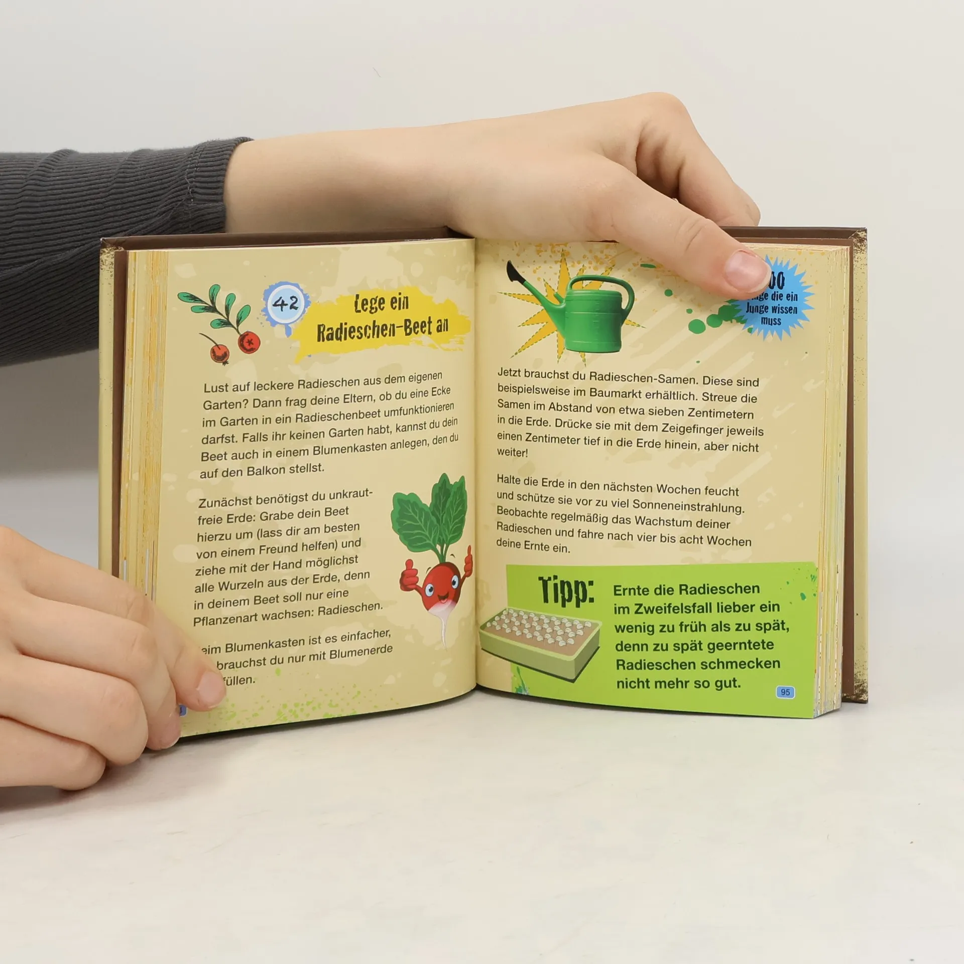 100 tolle Tipps für Jungen! Ratgeber für Jungen: 100 spannende Tipps und Tricks für Kinder, um ihre Fähigkeiten zu verbessern, Neues zu lernen und Spaß zu haben. Geschenkidee für Jungen ab 8: Dieses Buch ist die perfekte Geschenkidee für Jungen ab 8 Jahren, die an spannenden Aktivitäten interessiert sind. Bastelanleitungen für Kinder: Lerne, wie man eine Holunderpfeife baut, einen Fahrradreifen repariert, Geheime Botschaften versendet und vieles mehr! Spannende Aktivitäten für Kinder: Entdecke eine Vielzahl von Aktivitäten wie Geheimversteck einrichten, Pfeifen auf zwei Fingern und Geheimtinte herstellen. Fragen und Antworten für Jungs: Das Buch enthält auch Witze für Kinder und beantwortet interessante Fragen speziell für Jungen. Von Spiegel-Bestseller-Autor Philip Kiefer Entdecke den ultimative Ratgeber für Jungen - 100 Dinge, die ein Junge wissen muss. Dieses Buch ist vollgepackt mit spannenden Tipps und Tricks für Kinder, die ihre Fähigkeiten verbessern und Neues lernen möchten. Mit einer Vielzahl von Bastelanleitungen für Kinder, wie z. B. eine Holunderpfeife bauen oder einen Fahrradreifen reparieren, werden die Kinder stundenlang beschäftigt sein. Das Buch enthält auch viele spannende Aktivitäten für Kinder, wie ein Geheimversteck einrichten, Geheimtinte herstellen oder Pfeifen auf zwei Fingern. Darüber hinaus finden die Jungen auch Witze für Kinder und Antworten auf interessante Fragen, die speziell für Jungs gedacht sind. Als Geschenkidee für Jungen ab 8 Jahren ist dieses Buch perfekt geeignet. Es wird ihnen helfen, ihre Fertigkeiten zu entwickeln und ihnen einen unterhaltsamen Zeitvertreib zu bieten. Bestelle jetzt dieses spannende Kinderbuch für Jungs und bereite den Kindern in deinem Leben eine große Freude! Ein Buch voller spannender Tipps und Tricks, exklusiv für Jungen: Wie baut man eine Holunderpfeife? Wie repariert man einen Fahrradreifen? Wie stellt man ganz leicht Geheimtinte her? Finde es heraus und stöbere durch 100 Bastelanleitungen, Infos, Witze und vieles mehr im praktischen Taschenformat.