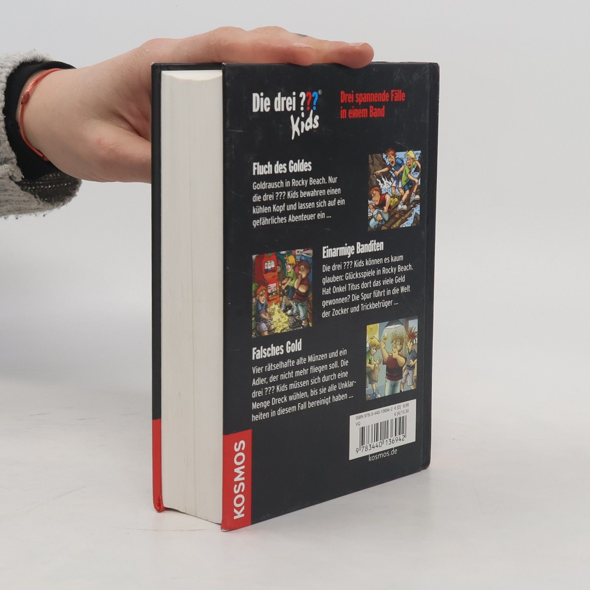 Justus, Peter und Bob beweisen aufs Neue, dass sie jedem Schurken gewachsen sind. Beim Goldrausch in Rocky Beach bewahren sie als einzige einen kühlen Kopf, sie nehmen es mit Zockern und Trickbetrügern auf und lösen den Fall um vier rätselhafte alte Münzen. Der spannende Dreifachband mit den Abenteuern: Fluch des Goldes, Einarmige Banditen, Falsches Gold.