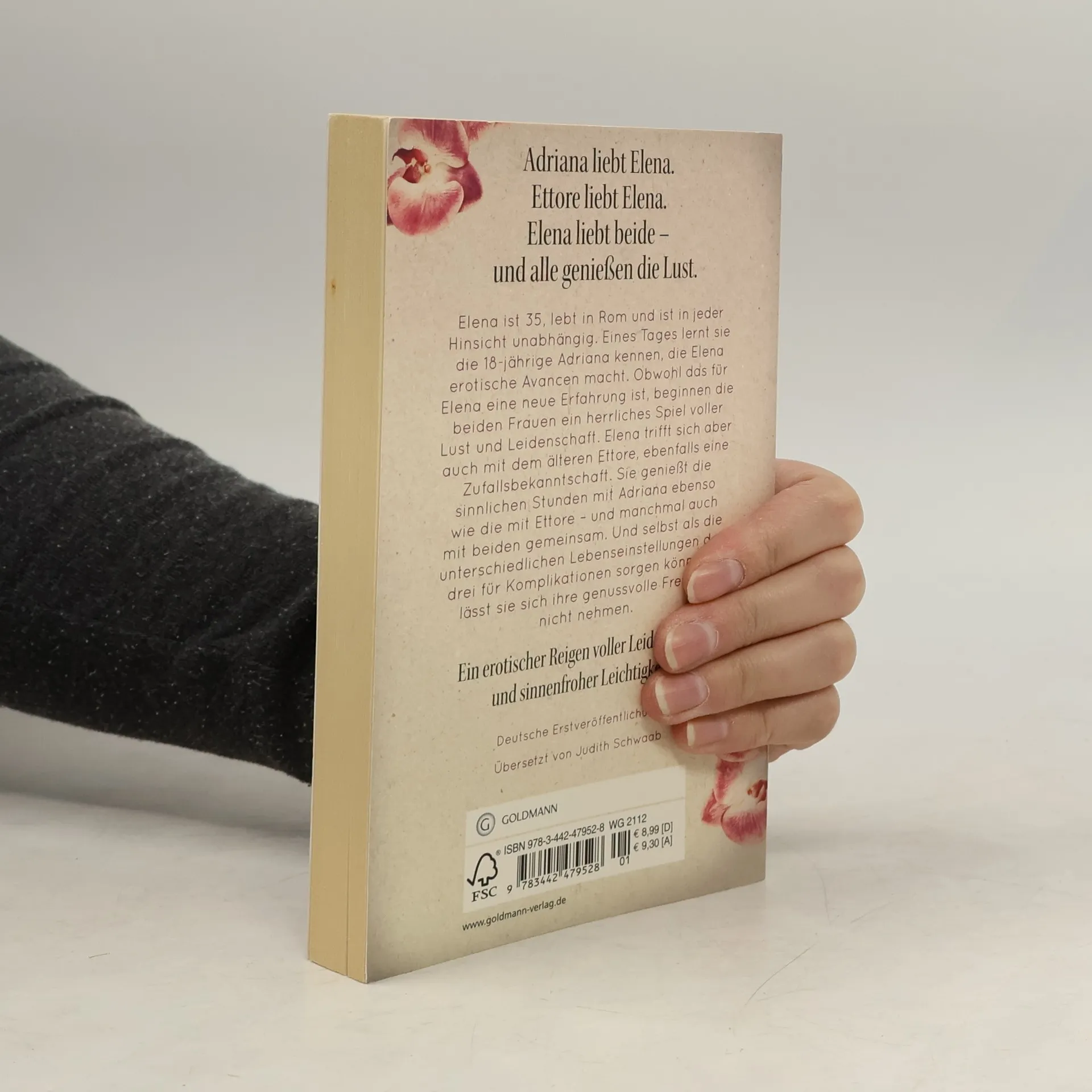 Adriana liebt Elena. Ettore liebt Elena. Elena liebt beide – und alle genießen die LustElena ist 35, lebt in Rom und ist in jeder Hinsicht unabhängig. Eines Tages lernt sie die 18-jährige Adriana kennen, die Elena erotische Avancen macht. Obwohl das für Elena eine neue Erfahrung ist, beginnen die beiden Frauen ein herrliches Spiel voller Lust und Leidenschaft. Elena trifft sich aber auch mit dem älteren Ettore, ebenfalls eine Zufallsbekanntschaft. Sie genießt die sinnlichen Stunden mit Adriana ebenso wie die mit Ettore – und manchmal auch mit beiden gemeinsam. Und selbst als die unterschiedlichen Lebenseinstellungen der drei für Komplikationen sorgen könnten, lässt sie sich ihre genussvolle Freude nicht nehmen.