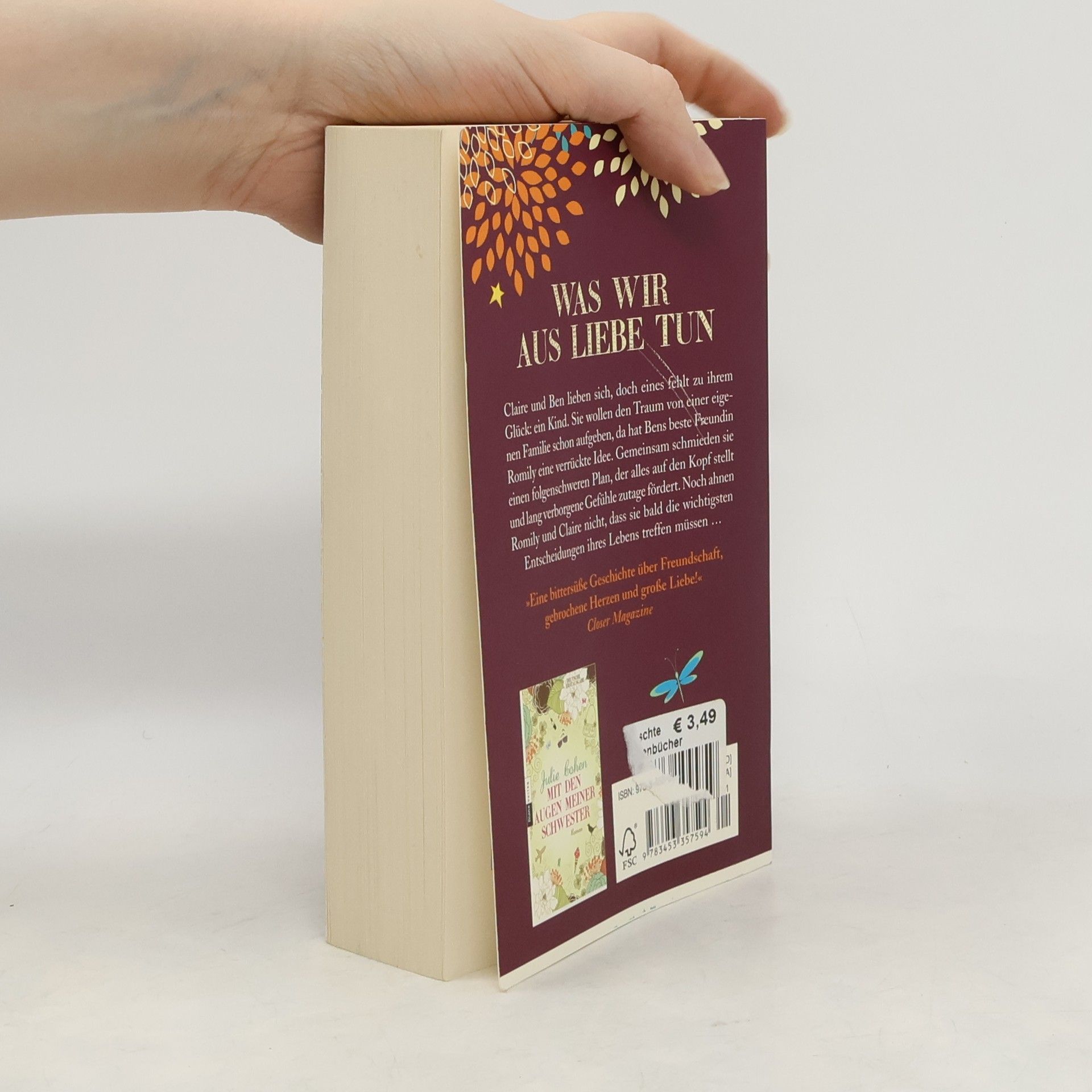 Was wir aus Liebe tunClaire und Ben lieben sich, doch eines fehlt zu ihrem Glück: ein Kind. Sie wollen den Traum von einer eigenen Familie schon aufgeben, da hat Bens beste Freundin Romily eine verrückte Idee. Gemeinsam schmieden sie einen folgenschweren Plan, der alles auf den Kopf stellt und lang verborgene Gefühle zutage fördert. Noch ahnen Romily und Claire nicht, dass sie bald die wichtigsten Entscheidungen ihres Lebens treffen müssen …