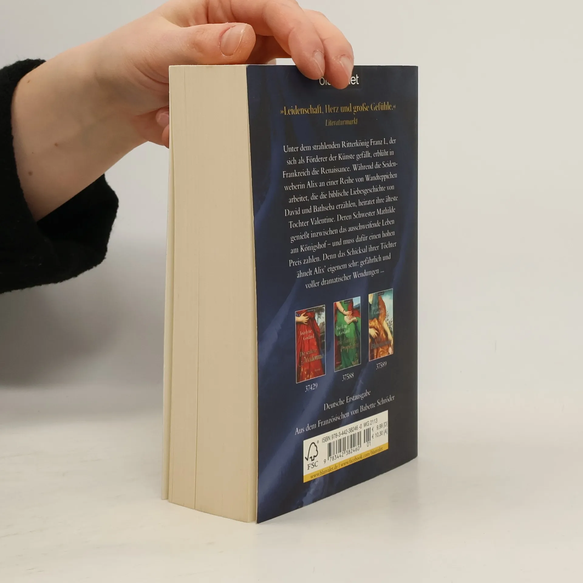 Unter dem strahlenden Ritterkönig Franz I., der sich als Förderer der Künste gefällt, erblüht in Frankreich die Renaissance. Während die Seidenweberin Alix an einer Reihe von Wandteppichen arbeitet, die die biblische Liebesgeschichte von David und Bathseba erzählen, heiratet ihre älteste Tochter Valentine. Deren Schwester Mathilde genießt inzwischen das ausschweifende Leben am Königshof – und muss dafür einen hohen Preis zahlen. Denn das Schicksal ihrer Töchter ähnelt demjenigen Alix’ sehr: gefährlich und voll dramatischer Wendungen …