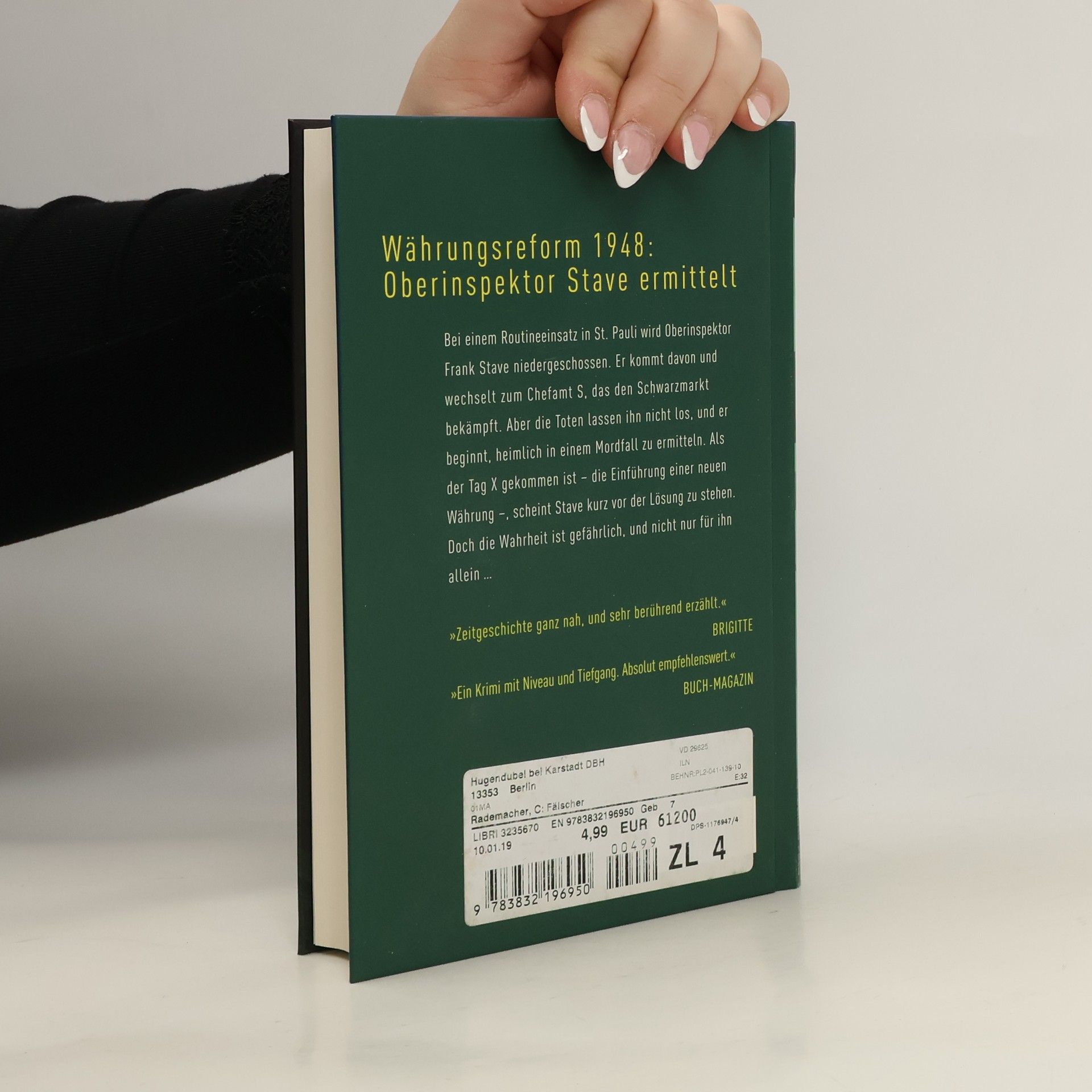 Kommissar Staves dritter Fall Hamburg: Bei einem Routineeinsatz wird Oberinspektor Frank Stave niedergeschossen. Er kommt davon, aber wechselt von der Mordkommission zum Chefamt S, das den Schwarzmarkt bekämpft. Dort wird Stave gleich mit einem rätselhaften Fall konfrontiert: Trümmerfrauen haben in den Ruinen eines Kontorhauses Kunstwerke aus der Weimarer Zeit gefunden – gleich neben einer Leiche, deren Identität der Kollege von der Mordkommission offenbar gar nicht aufklären will. Kurz darauf vertraut ihm Lieutenant MacDonald ein weiteres Problem an: Auf dem Schwarzmarkt sind rätselhafte Geldscheine aufgetaucht, deren Existenz die geheimen Pläne der Alliierten stört. Der Oberinspektor entdeckt bald seltsame Parallelen zwischen den beiden Fällen. Als der Tag X gekommen ist – die Einführung einer neuen Währung, über die schon seit Wochen in der Stadt gemunkelt wird –, scheint Stave kurz vor der Lösung zu stehen. Doch die Wahrheit ist gefährlich, und nicht nur für ihn allein …