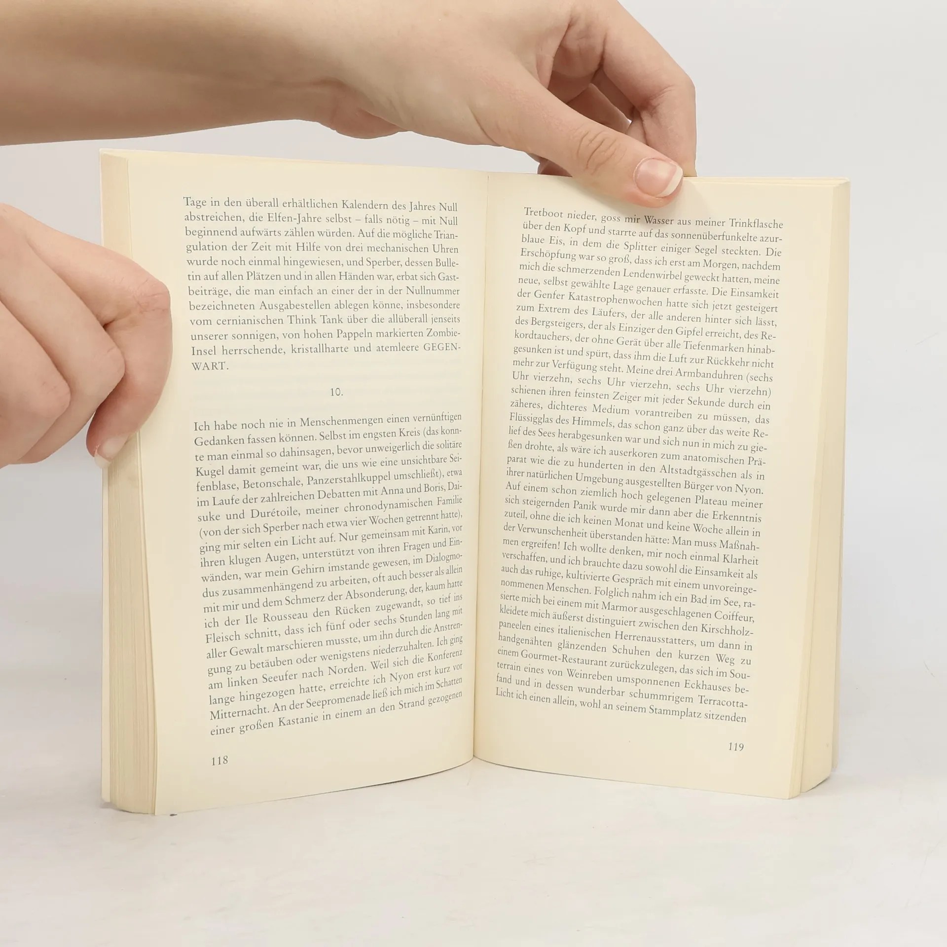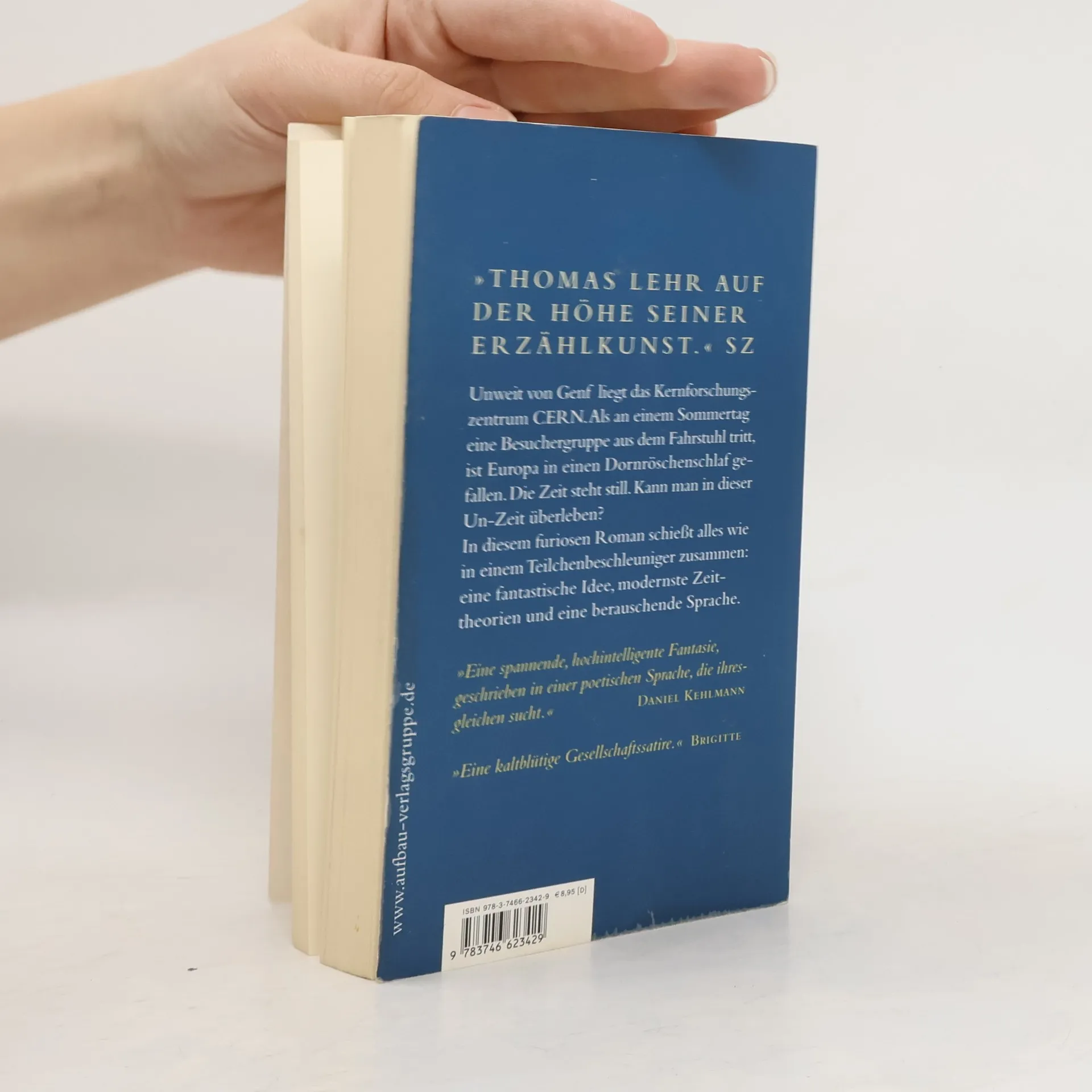 Nicht weit von Genf, der Stadt der Atomphysiker, Diplomaten und Uhrmacher, liegen die unterirdischen Anlagen des Kernforschungszentrums CERN. Als an einem sonnigen Augusttag eine Besuchergruppe wieder ans Tageslicht tritt, ist die gesamte Genfer Region, ja ganz Europa in einen Dornröschenschlaf gefallen. Die Besucher bewegen sich wie in einer "Fotografie der Welt". Steht die Zeit still? Was ist geschehen? Hat der Teilchenbeschleuniger eine Zeit- katastrophe verursacht? Die 70 "Chronifizierten" müssen mit einer traumatischen Situation von Einsamkeit, Macht und Ohnmacht zurechtkommen, Theorien entwickeln und Strategien des Zusammenlebens erproben. Obwohl für sie die persönliche Zeit weiterläuft, in der sogar Kinder geboren werden, sind sie scheinbar in alle Ewigkeit gefangen in der 42. Sekunde um 12:47 dieses Sommertags - bis nach fünf Jahren aus wahrhaft heiterem Himmel die Weltzeit plötzlich für 3 kostbare Sekunden weitertickt. Aus ihrer Lethargie gerissen, sammelt sich die inzwischen durch Krankheiten und mörderische Auseinandersetzun-gen dezimierte Gruppe zu einem "finalen Experiment". In diesem furiosen Roman schießen die erzählerischen Momente wie in einem Teilchenbeschleuniger zusammen: modernste Zeittheorien, existentielle Deutungen und eine mitreißende Sprache. Thomas Lehr legt mit diesem Roman das wichtigste Buch seines bisher vielfach preisgekrönten Werkes vor.