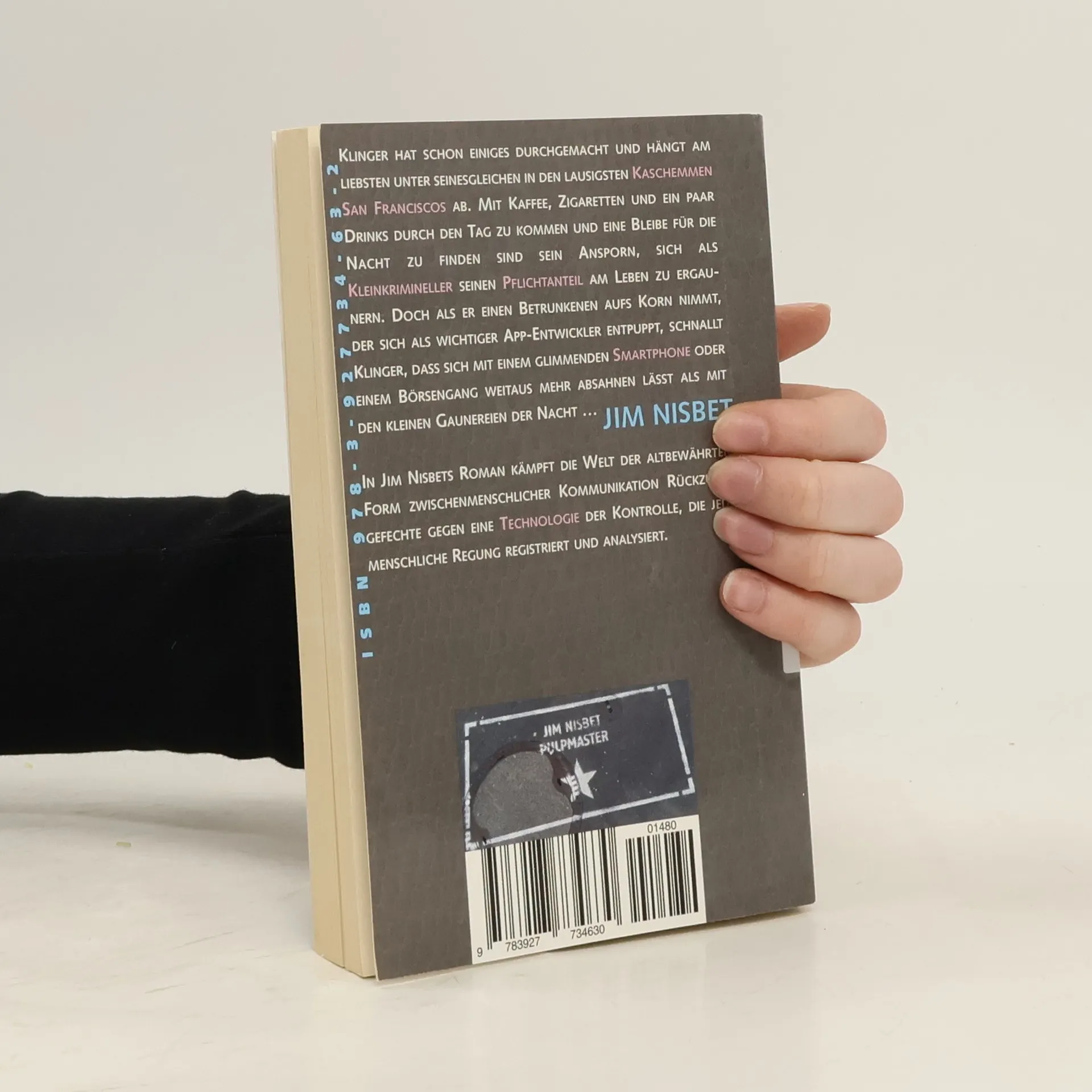 Klinger hat schon einiges durchgemacht und hängt am liebsten unter seinesgleichen in den lausigsten Kaschemmen San Franciscos ab. Mit Kaffee, Zigaretten und ein paar Drinks durch den Tag zu kommen und eine Bleibe für die Nacht zu finden sind sein Ansporn, sich als Kleinkrimineller seinen Pflichtanteil am Leben zu ergaunern. Doch als er einen Betrunkenen aufs Korn nimmt, der sich als wichtiger App-Entwickler entpuppt, schnallt Klinger, dass sich mit einem glimmenden Smartphone oder einem Börsengang weitaus mehr absahnen lässt als mit den kleinen Gaunereien der Nacht … In Jim Nisbets Roman kämpft die Welt der altbewährten Form zwischenmenschlicher Kommunikation Rückzugsgefechte gegen eine Technologie der Kontrolle, die jede menschliche Regung registriert und analysiert.