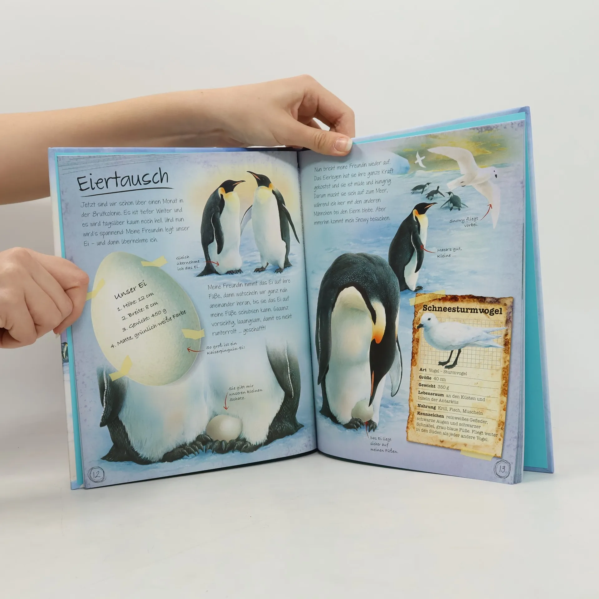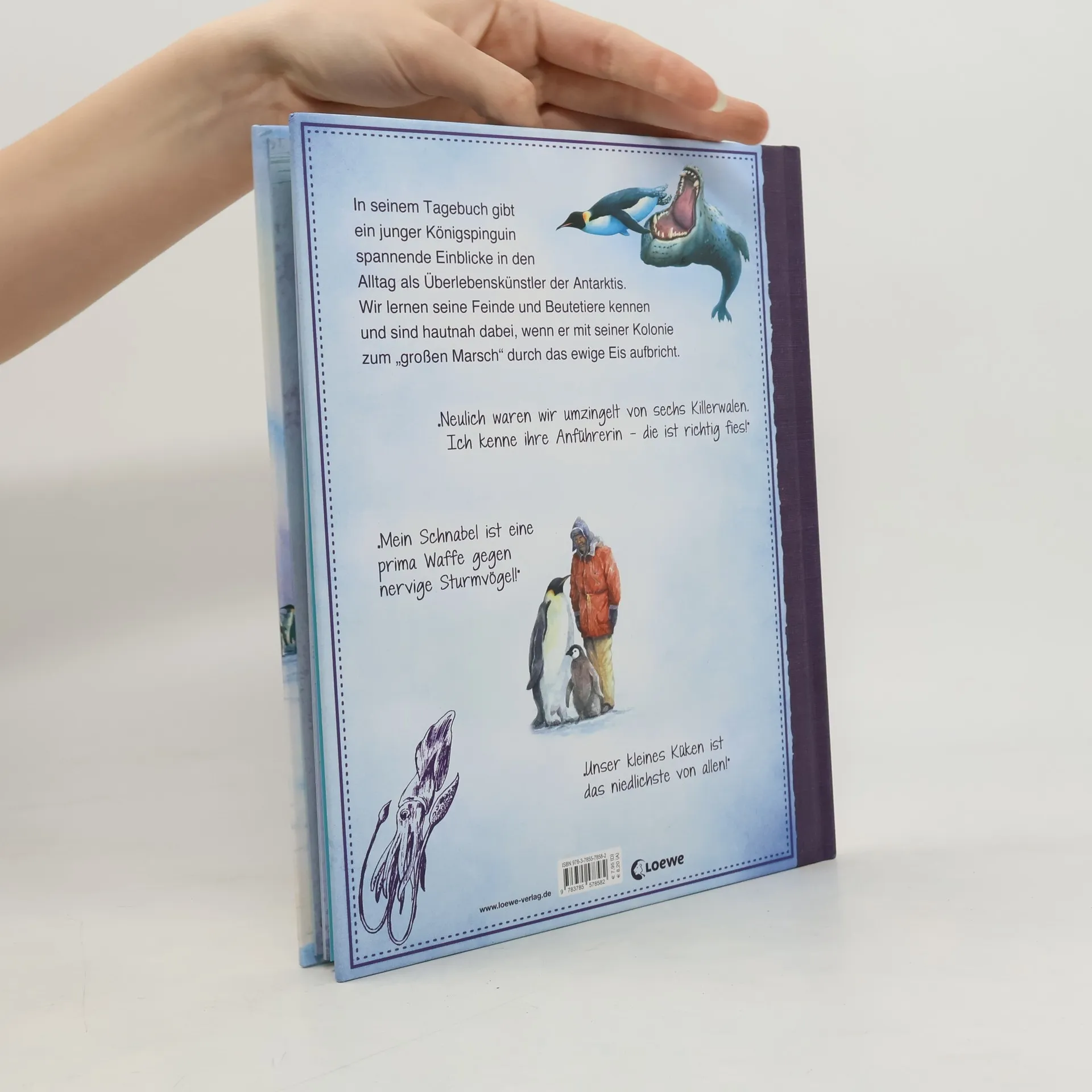 „Mein Schnabel ist eine prima Waffe gegen nervige Sturmvögel!“ „Unser kleines Küken ist das niedlichste von allen!“ In seinem Tagebuch gibt ein junger Königspinguin spannende Einblicke in seinen Alltag als Überlebenskünstler der Antarktis. Wir lernen seine Feinde und Beutetiere kennen und sind hautnah dabei, wenn er mit seiner Kolonie zum „großen Marsch“ durch das ewige Eis aufbricht.