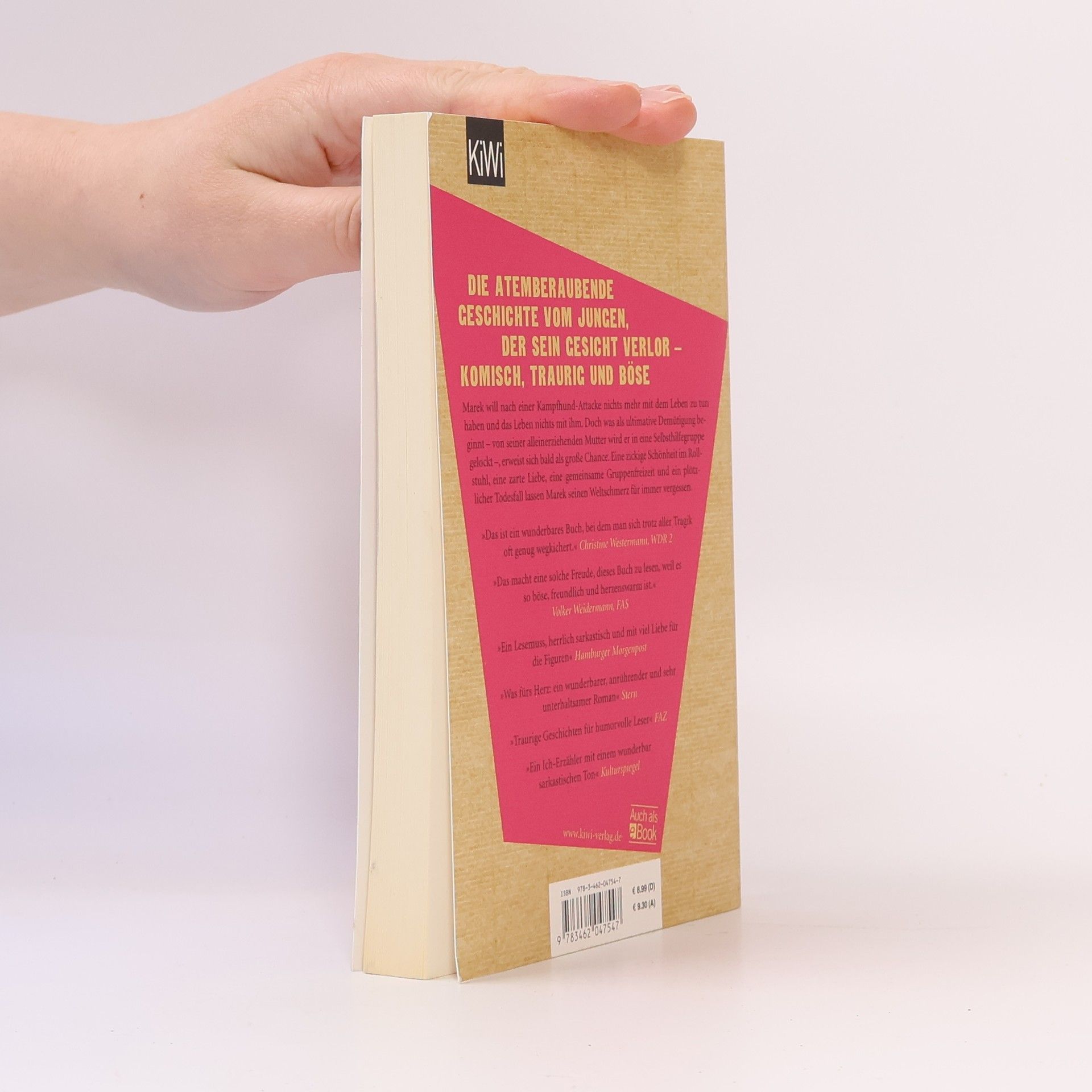 Alina Bronsky erzählt von der Sehnsucht nach Verständnis und dem Aufbruch aus der Isolation, was das Erwachsenwerden prägt. Marek betritt einen Gruppenraum im Familienbildungszentrum und findet sich in einer Selbsthilfegruppe mit versehrten Jugendlichen wieder, geleitet von einem Guru. Er wollte eine Lerngruppe fürs externe Abitur besuchen und hat mit der „Krüppeltruppe“ nichts zu tun – doch schon bald steht sein Leben Kopf. In Bronskys drittem Roman geht es rasant zu, sodass man nicht weiß, ob man lachen oder weinen soll. Marek, der nach einer Kampfhund-Attacke mit seinem Leben hadert und die Nummer seiner Freundin gelöscht hat, wagt sich nur im Dunkeln nach draußen. Was als Demütigung beginnt, entwickelt sich zu einer Chance. Eine zickige Schönheit im Rollstuhl, eine zarte Liebe, eine gemeinsame Gruppenfreizeit und ein plötzlicher Todesfall lassen Marek seinen Weltschmerz für immer vergessen. Der Roman ist eine Mischung aus rasendem Humor und herzzerreißender Traurigkeit, nie weinerlich, aber oft herrlich böse.