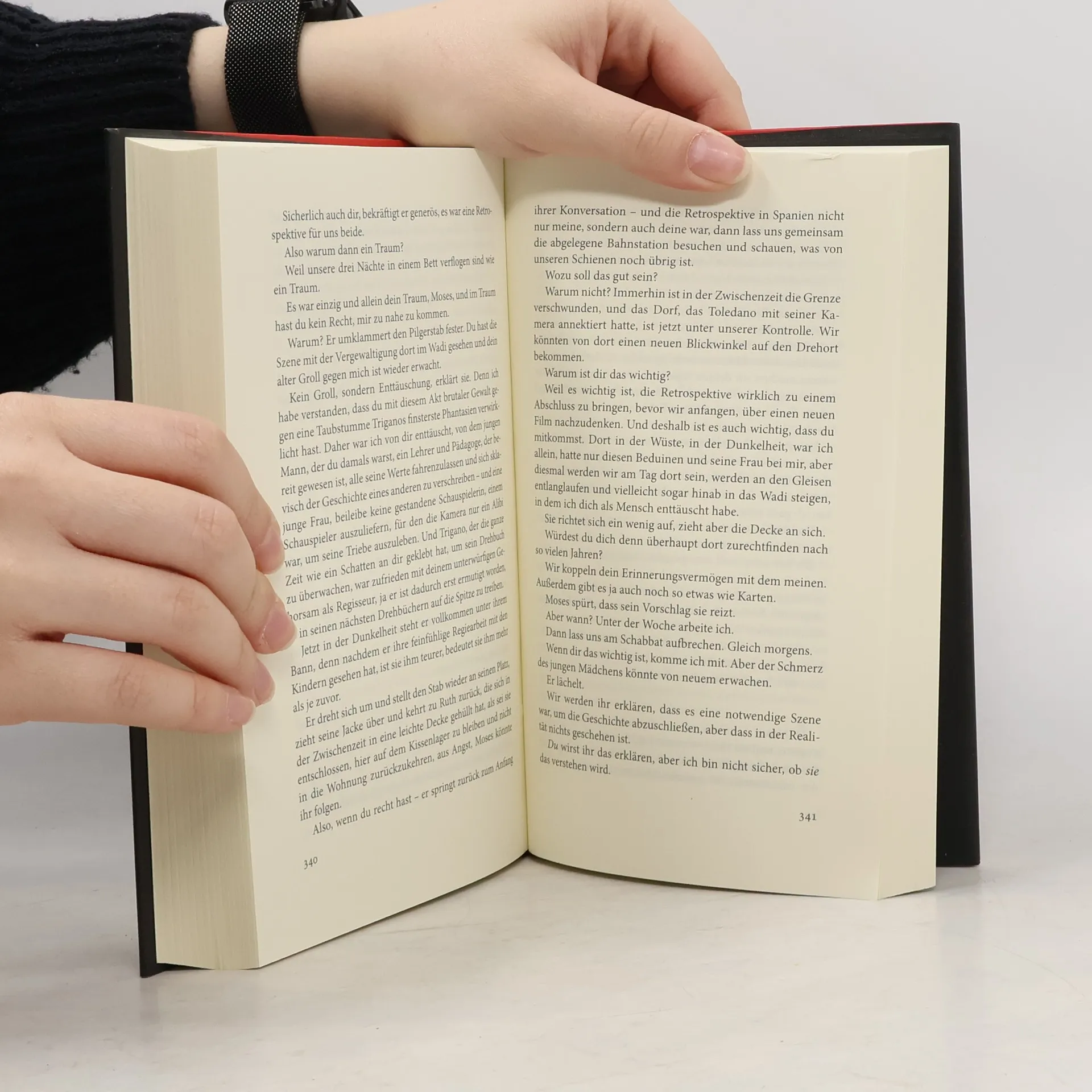 Abraham B. Jehoschua erzählt in seinem meisterhaft komponierten Roman von einem erfolgreichen Leben und von dem Preis, der dafür gezahlt werden muss. Als der Regisseur Jair Moses zu einer Retrospektive seiner Filme nach Santiago de Compostela eingeladen wird, will er die Reise nach Spanien in Begleitung von Ruth, seiner langjährigen Weggefährtin, genießen. Aber dann ruft ein verstörendes Bild in seinem Hotelzimmer vergessen geglaubte Erinnerungen wach: Eine Filmszene, in der Ruth als junge Frau einem Bettler am Straßenrand die Brust geben sollte, führte zum Zerwürfnis mit dem Drehbuchautor, seinem engsten Freund. Wie konnte es so weit kommen? Die Konfrontation mit seinen alten Filmen, noch dazu in der fremden Sprache, lässt Moses tief in seine Vergangenheit eintauchen und ihn die Ereignisse von damals in einem neuen Licht sehen. Der überwältigende Wunsch nach Versöhnung wird für ihn zum Auslöser für die Auseinandersetzung mit der eigenen Geschichte.