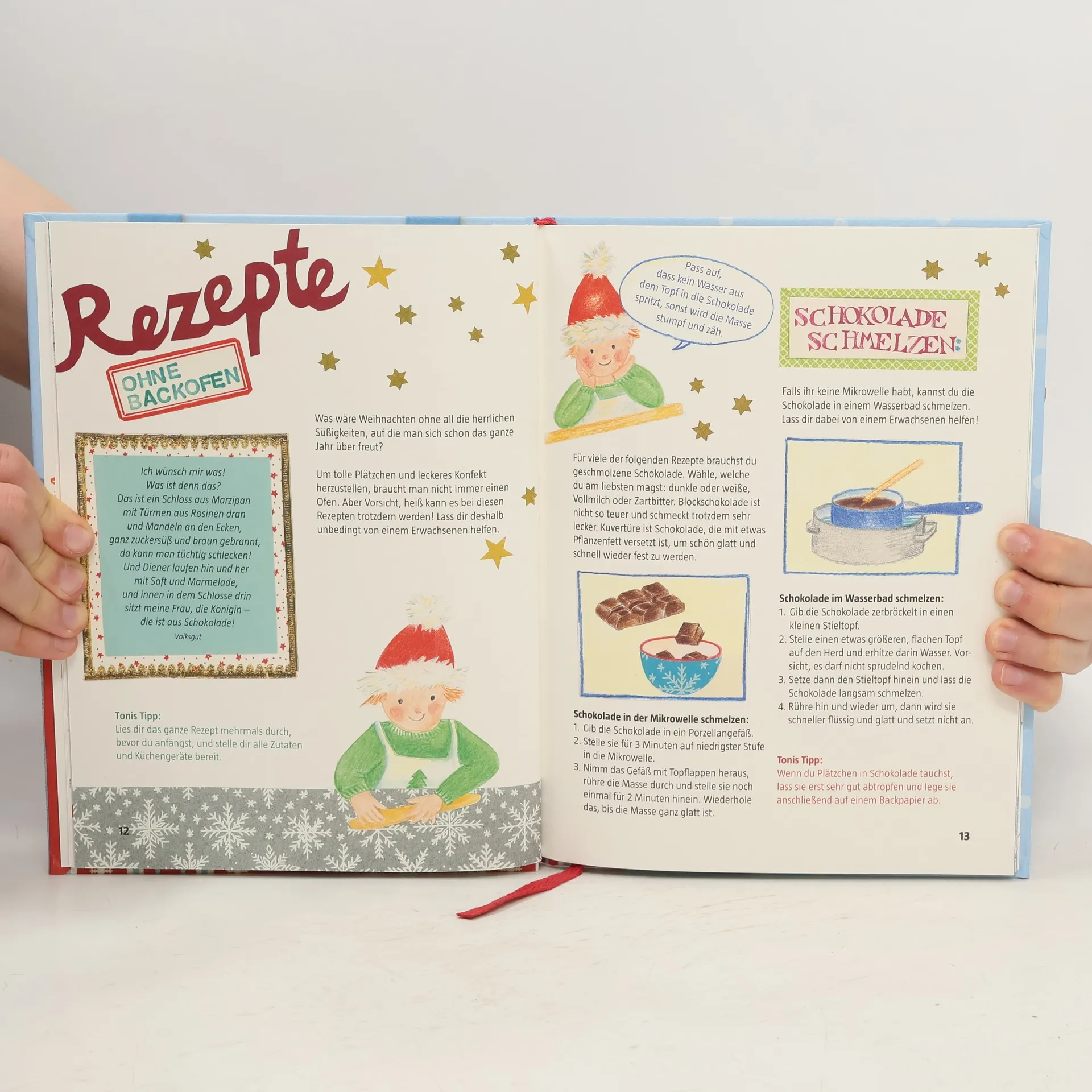 Bunte Ausstechplätzchen, saftiger Quark-Rosinen-Stollen, ein hübsch geschmücktes Pfefferkuchenhaus und Muffins, die nach Zimt duften: In diesem Buch finden kleine Bäcker ab acht Jahren die besten Rezepte für weihnachtliche Köstlichkeiten. Leckerschmecker Toni erklärt Schritt für Schritt, wie’s geht, und gibt viele tolle Tipps zum Verzieren, Aufbewahren und Verschenken.