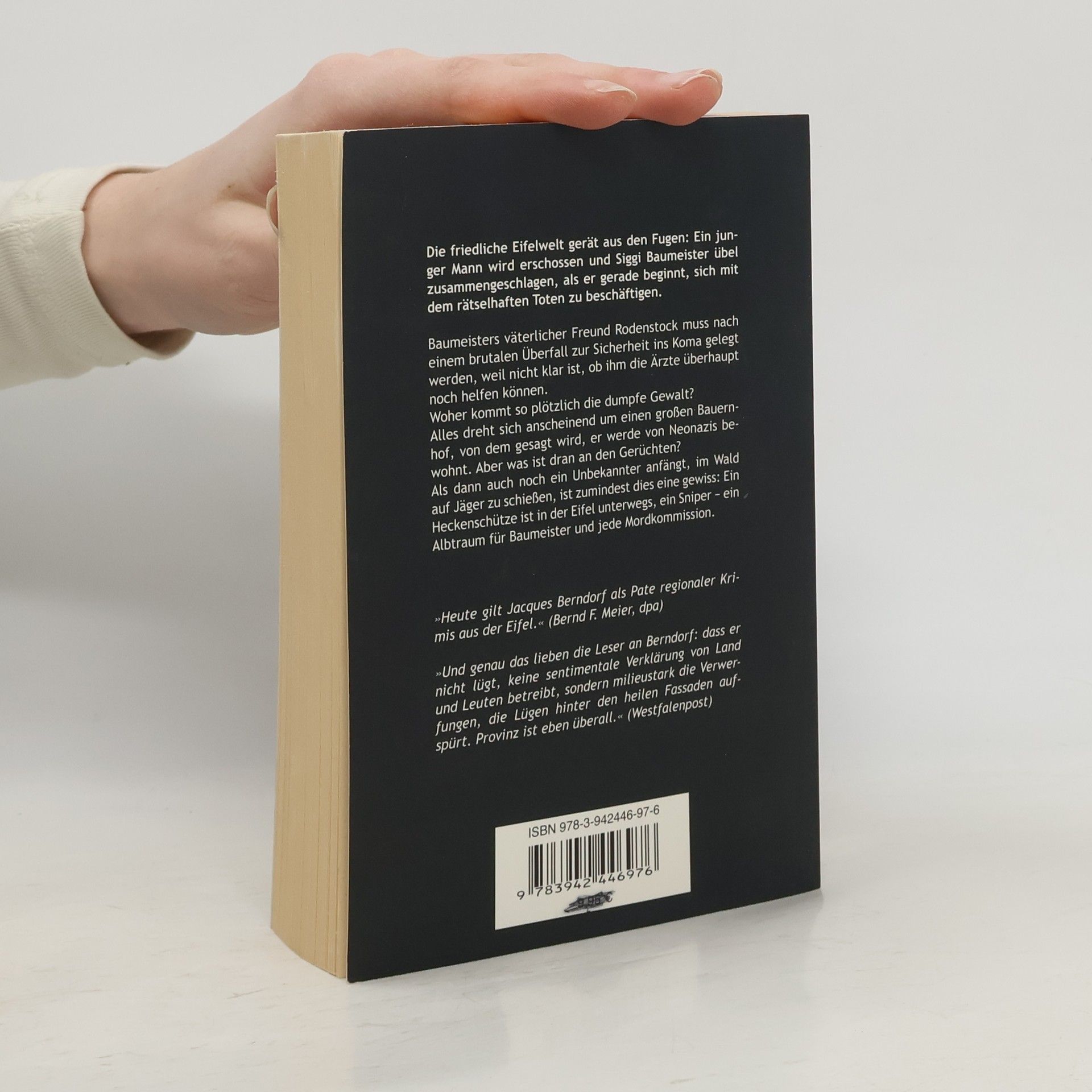 In der Eifel herrscht Krieg, und niemand weiß, wo die Fronten verlaufen.Die friedliche Eifelwelt gerät völlig aus den Fugen: Siggi Baumeister wird schwer verletzt, noch ehe er sich mit den Untersuchungen um einen rätselhaften Toten beschäftigen kann. Sein väterlicher Freund Rodenstock muss nach einem brutalen Überfall sicherheitshalber ins Koma gelegt werden, weil nicht klar ist, ob ihm die Ärzte überhaupt noch helfen können.Alles dreht sich anscheinend um einen großen Bauernhof, von dem jedermann behauptet, er werde von Neonazis bewohnt. Aber was ist beweisbar? Ein junger Mann wird erschossen, eine Sechzehnjährige schlägt brutal mit einem Axtstiel zu, und ein Unbekannter schießt auf Jäger im Wald.Mit Sicherheit weiß man: Ein Heckenschütze ist in der Eifel unterwegs, ein Sniper - ein Alptraum für jede Mordkommission. Die Stimmung ist so aufgeheizt, dass junge Mütter ihren Kindern verbieten, draußen zu spielen.